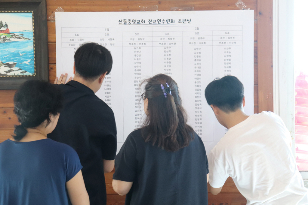 180여명의 성도들이 6개의 조로 나뉘어졌고, 서로서로 자기 소개도 하면서 저녁시간에 있을 조별 발표회를 열심히 연습했습니다. 각 조의 열정이 느껴지는 화이팅 넘치는 시간이었어요.
