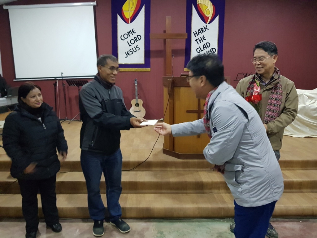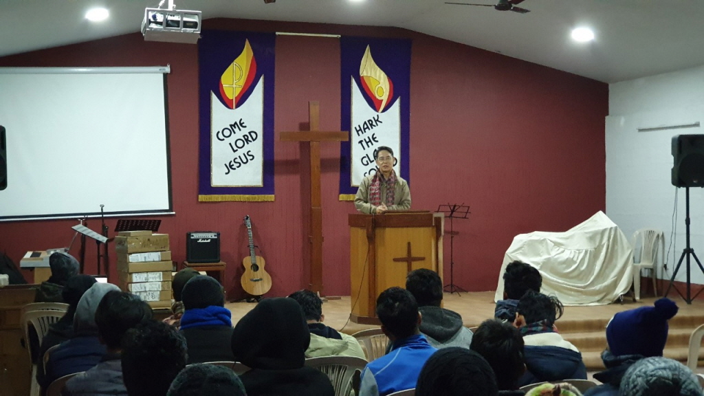 2) 네팔신학교 새벽 기도회 참석. 김연정 담임목사님 말씀인도 및 컴퓨터 전달식