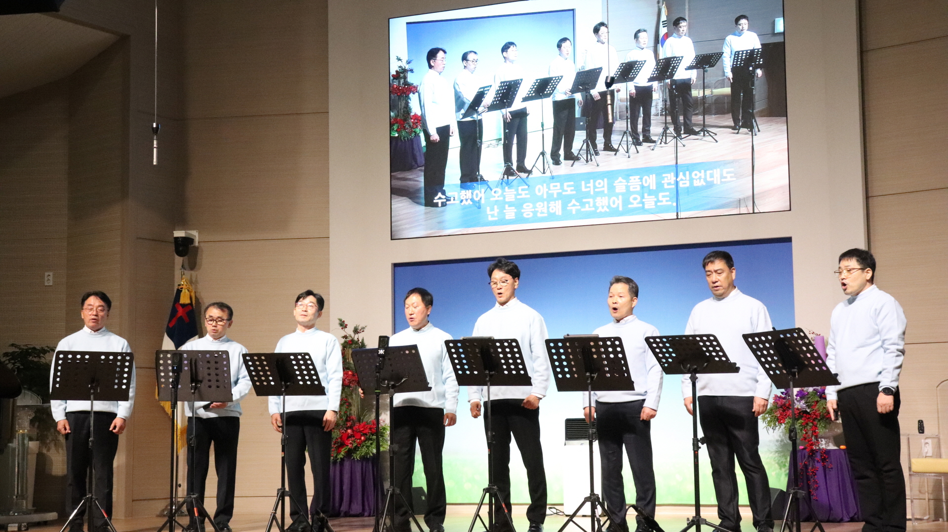 11월 30일(주일) 오후찬양예배시에 산돌두나미스 남성중창단 제13회 정기연주회 '일어나서 함께가자'가 공연되었습니다.