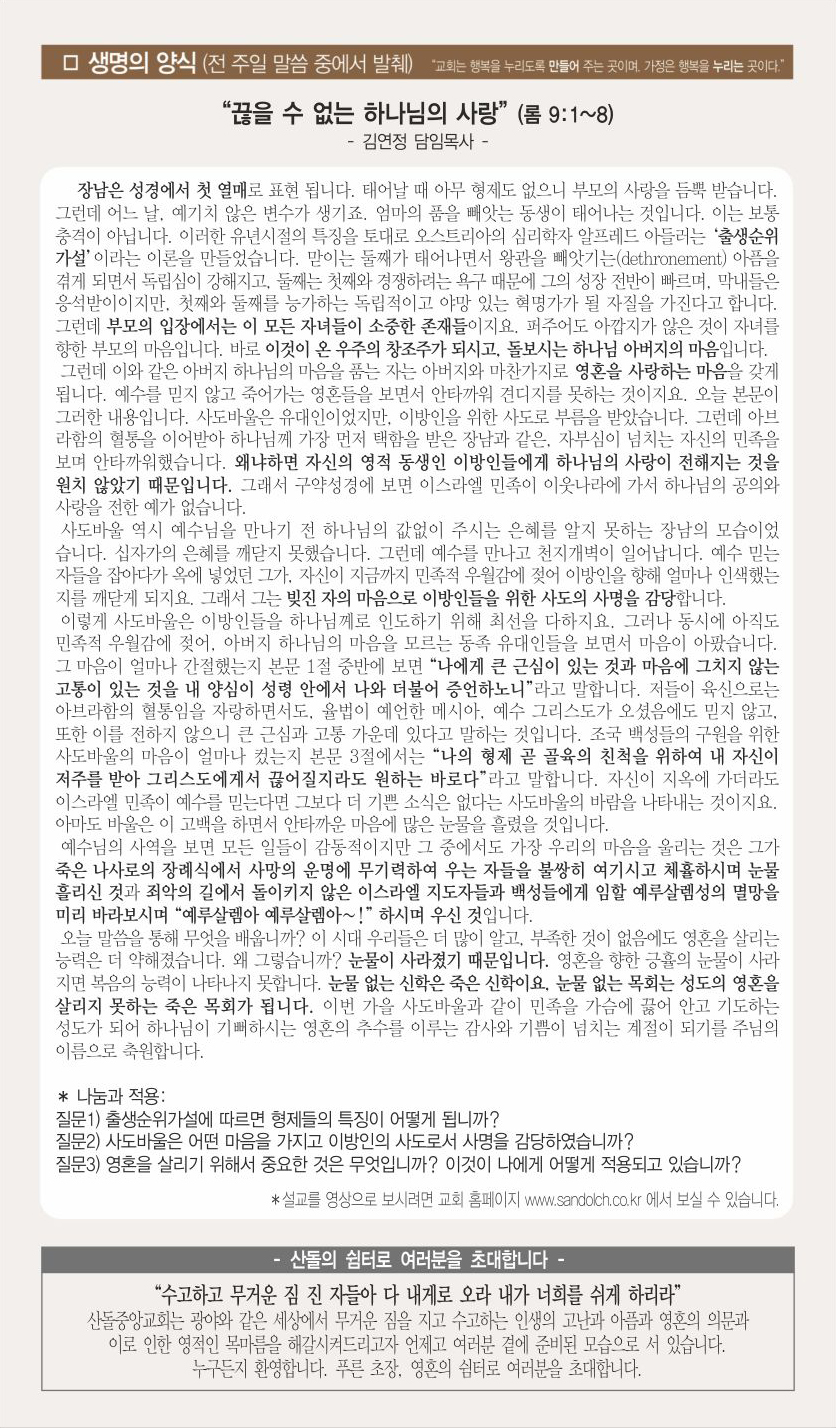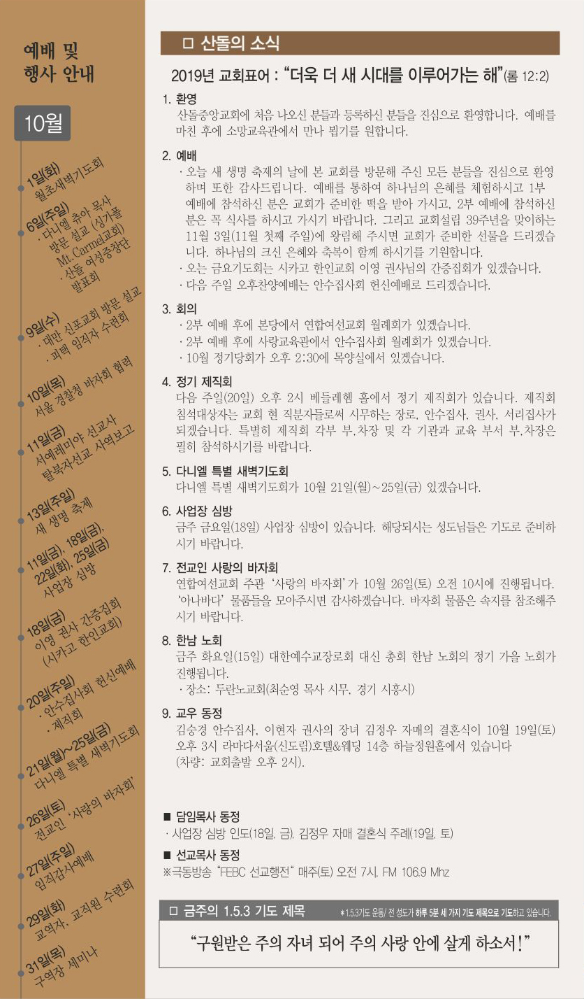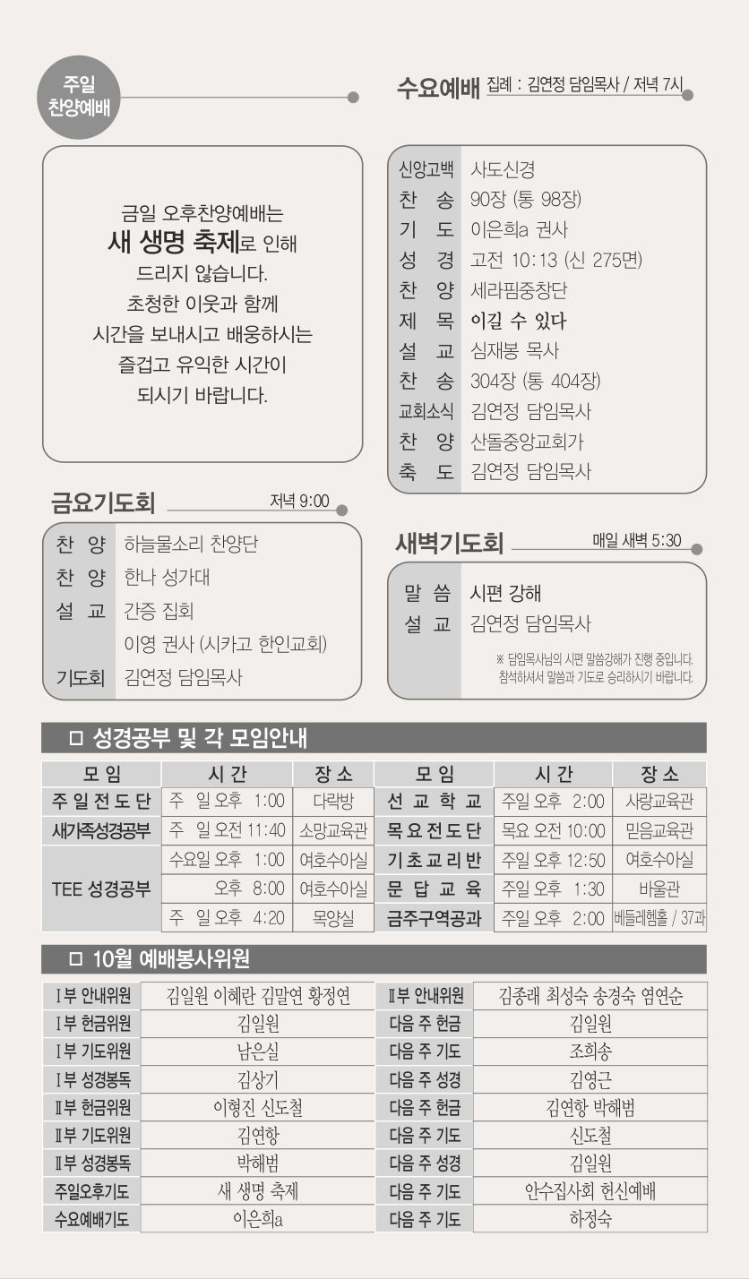 10월 13일 교회주보