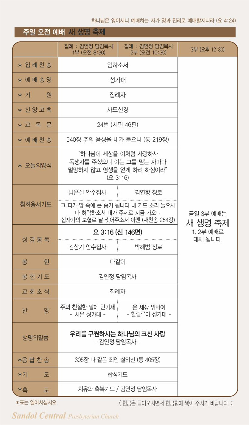 | 이전글 | 10월 20일 교회주보 | 운영자 | 2019.10.19 | 0 | 782 |