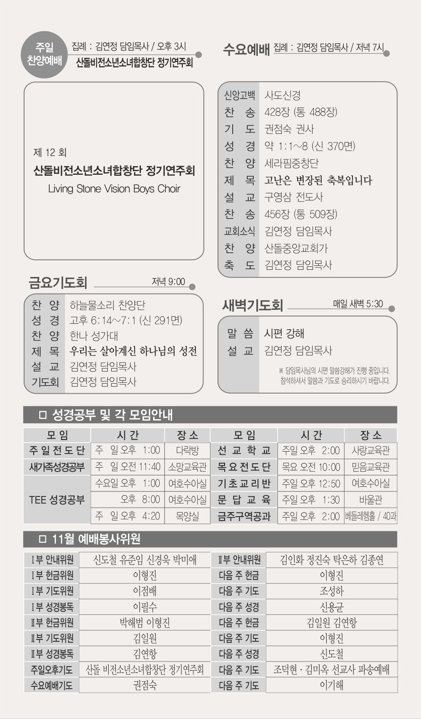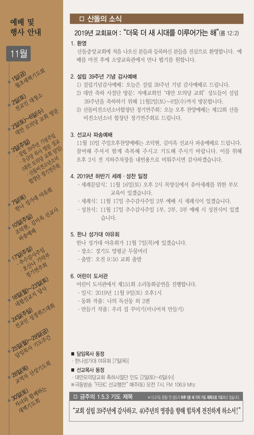 | 이전글 | 11월 10일 교회주보 | 운영자 | 2019.11.09 | 0 | 866 |