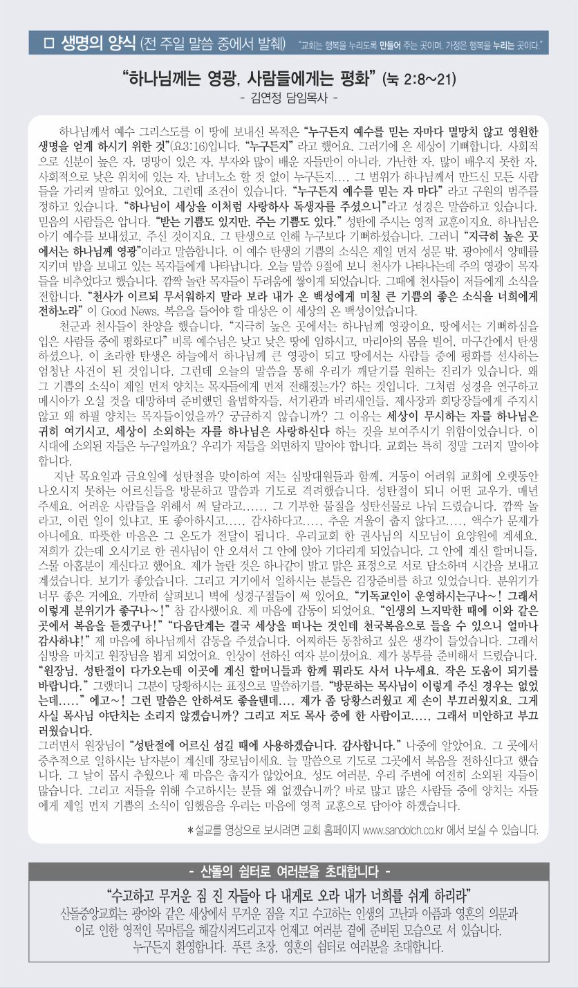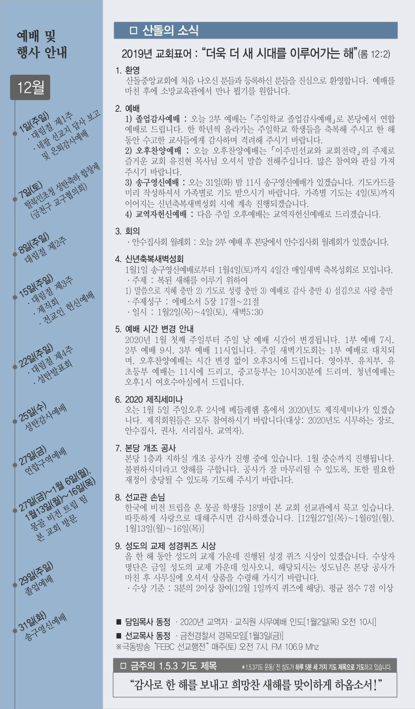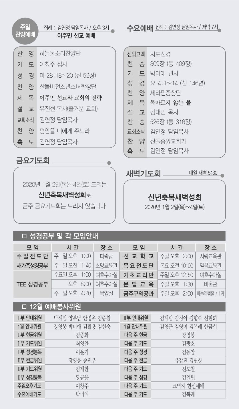12월 29일 교회주보