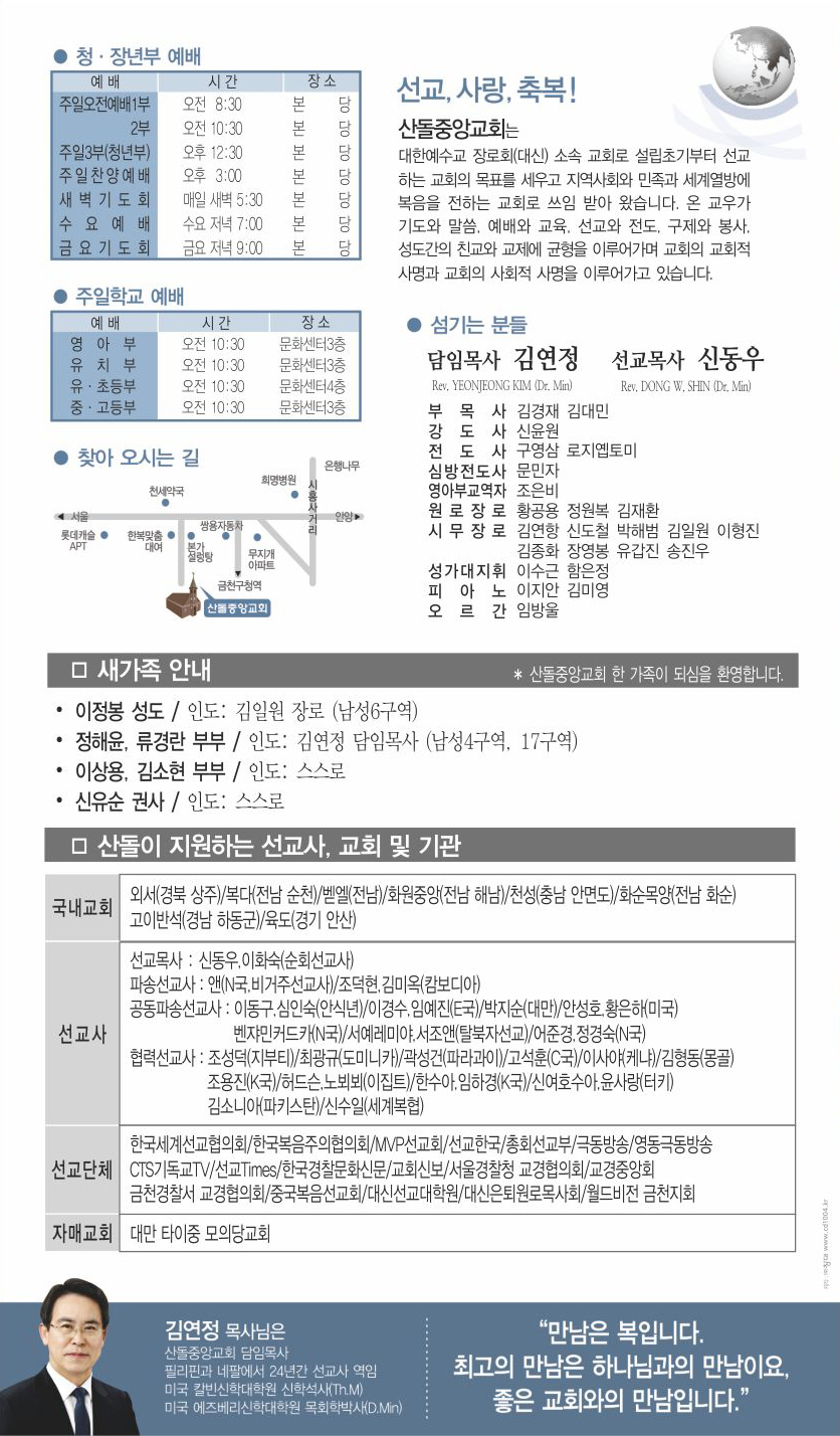 | 다음글 | 12월 22일 교회주보 | 운영자 | 2019.12.21 | 0 | 1080 |