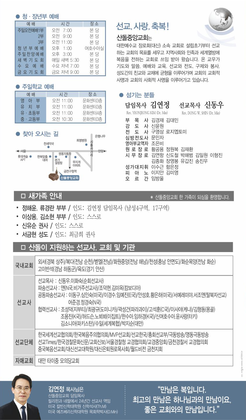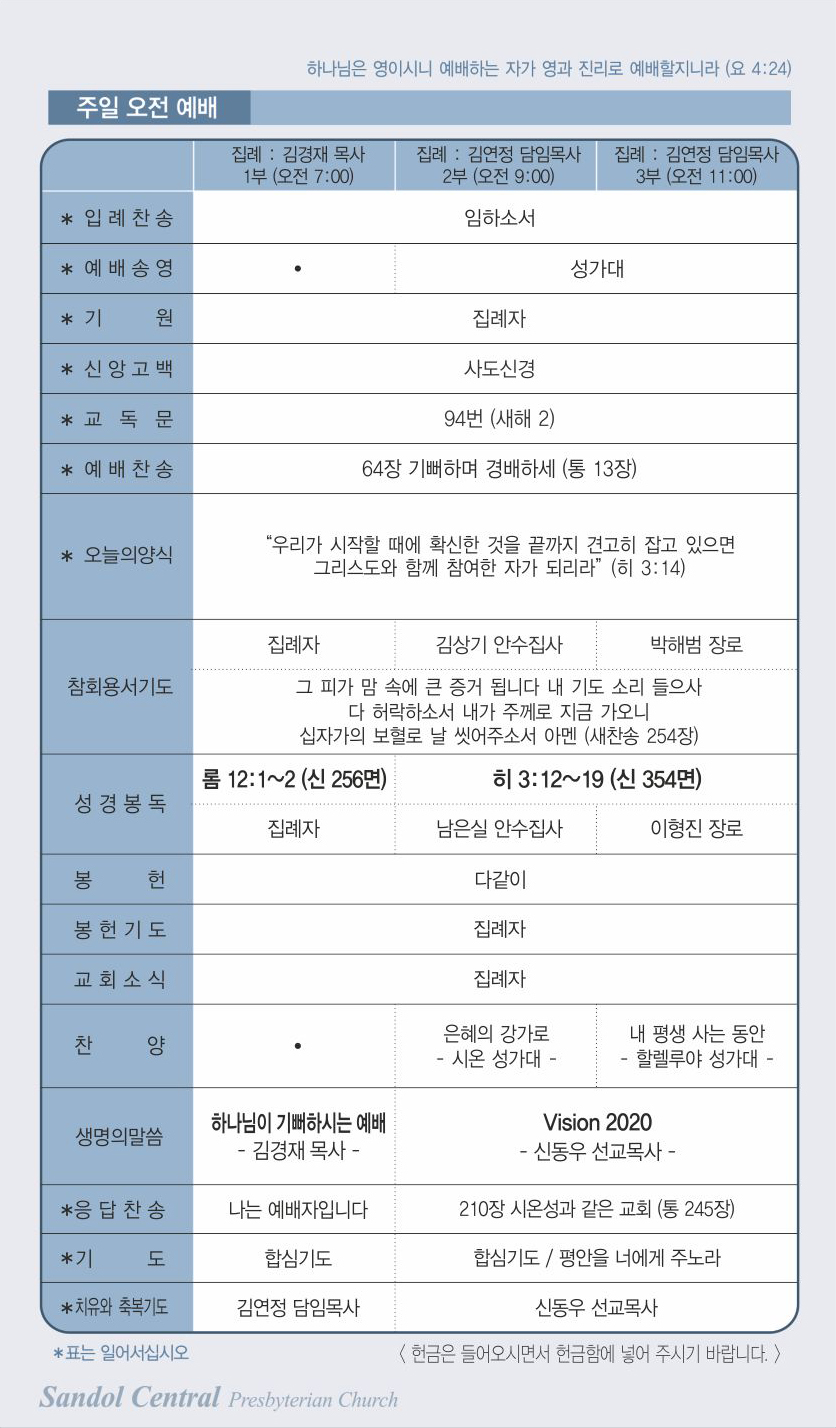 | 이전글 | 01월 19일 교회주보 | 운영자 | 2020.01.18 | 0 | 1065 |