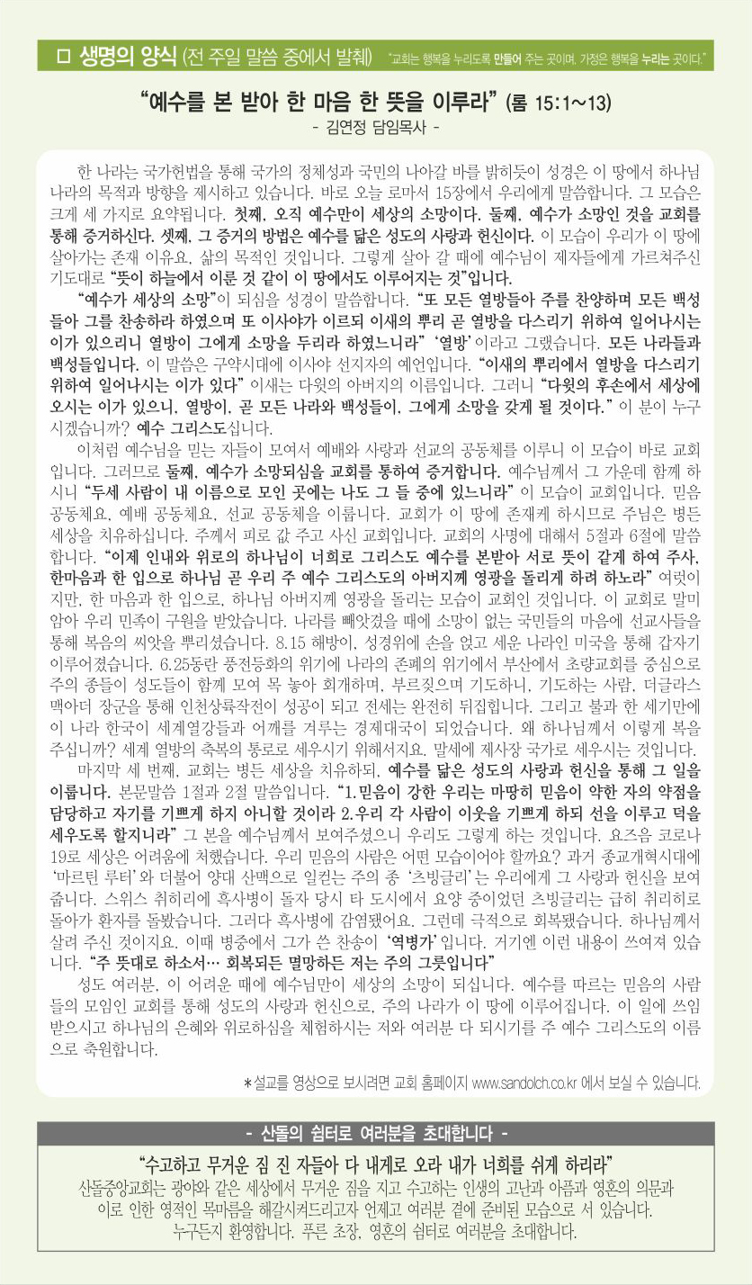 | 다음글 | 03월 15일 교회주보 | 운영자 | 2020.03.14 | 0 | 863 |
