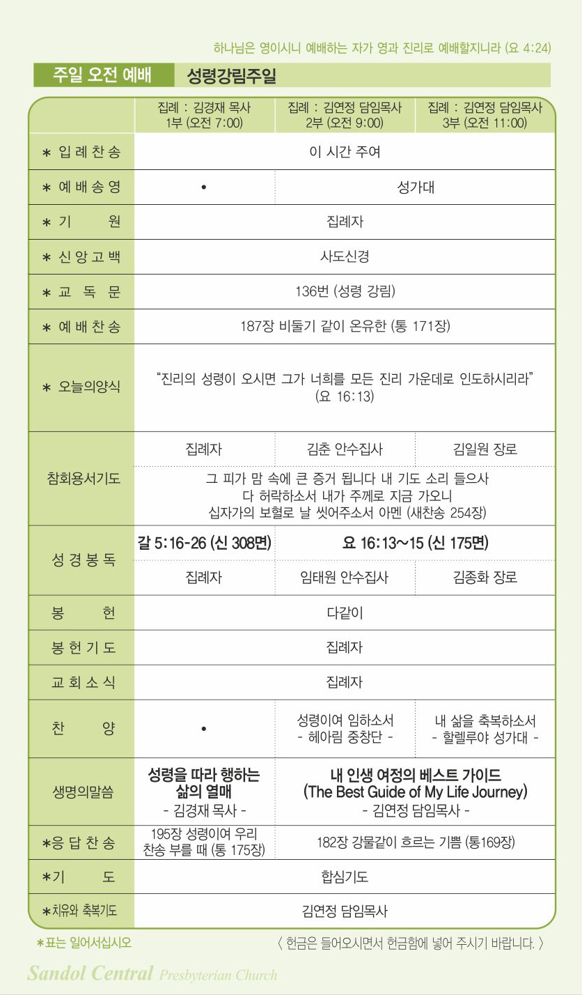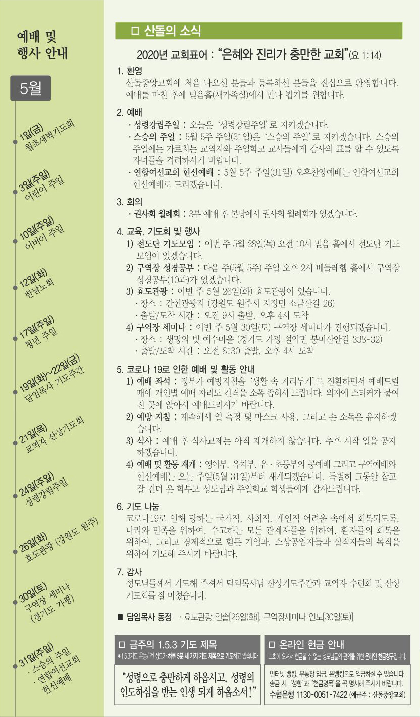 05월 24일 교회소식