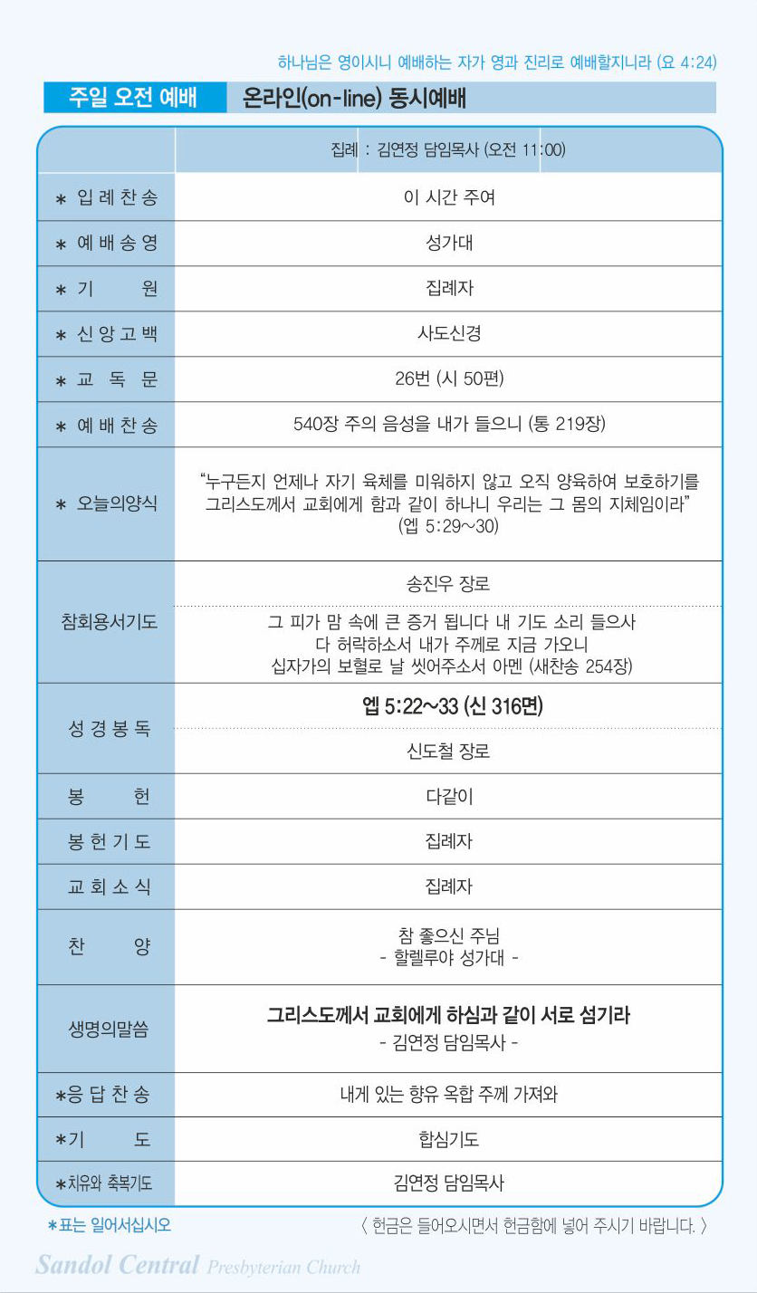 | 이전글 | 09월 06일 교회주보 | 운영자 | 2020.09.05 | 0 | 862 |