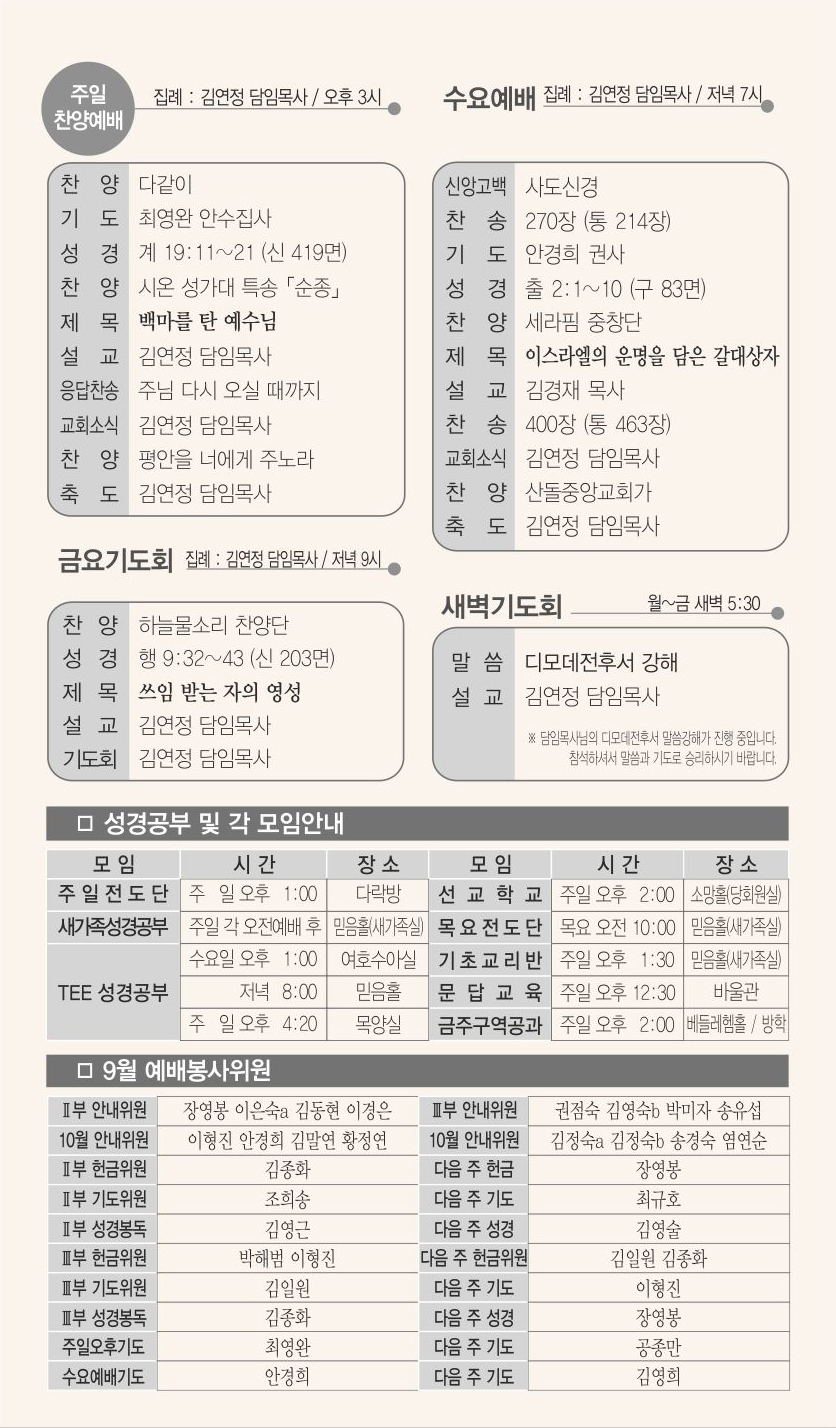 09월 27일 교회주보