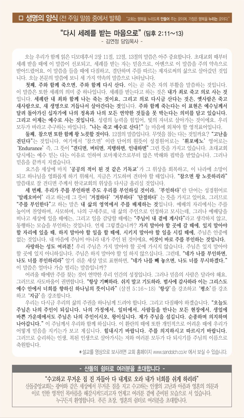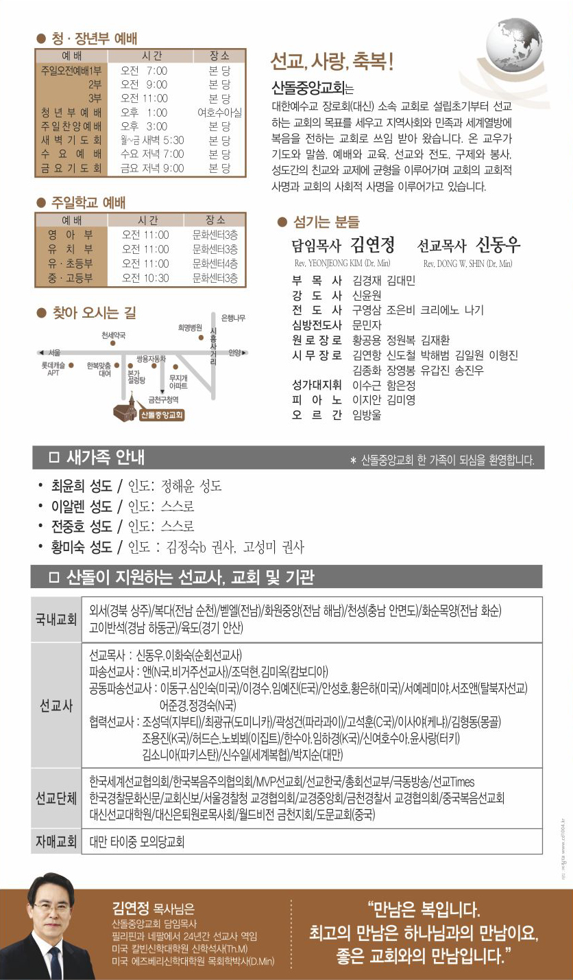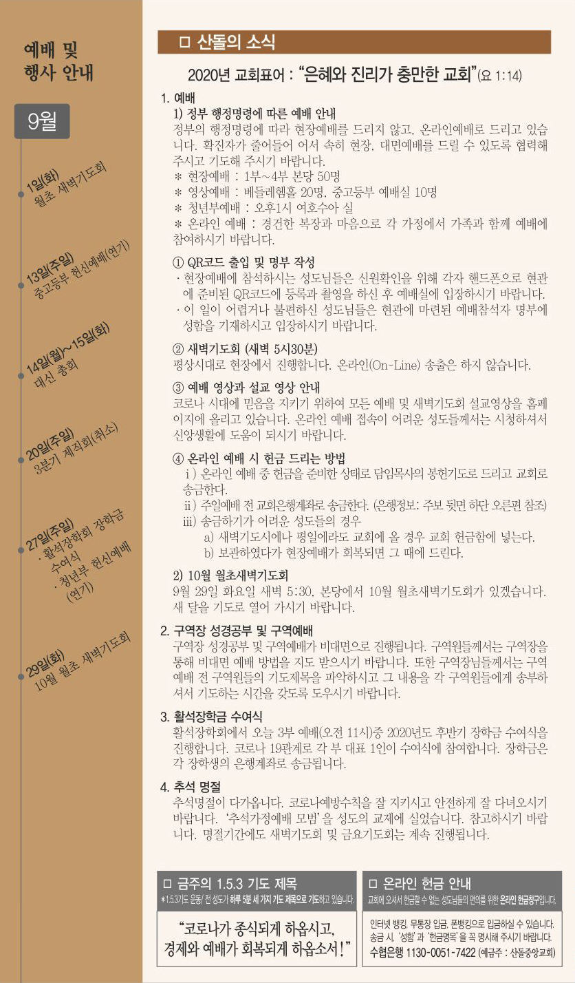 | 다음글 | 09월 19일 교회주보 | 운영자 | 2020.09.19 | 0 | 976 |
