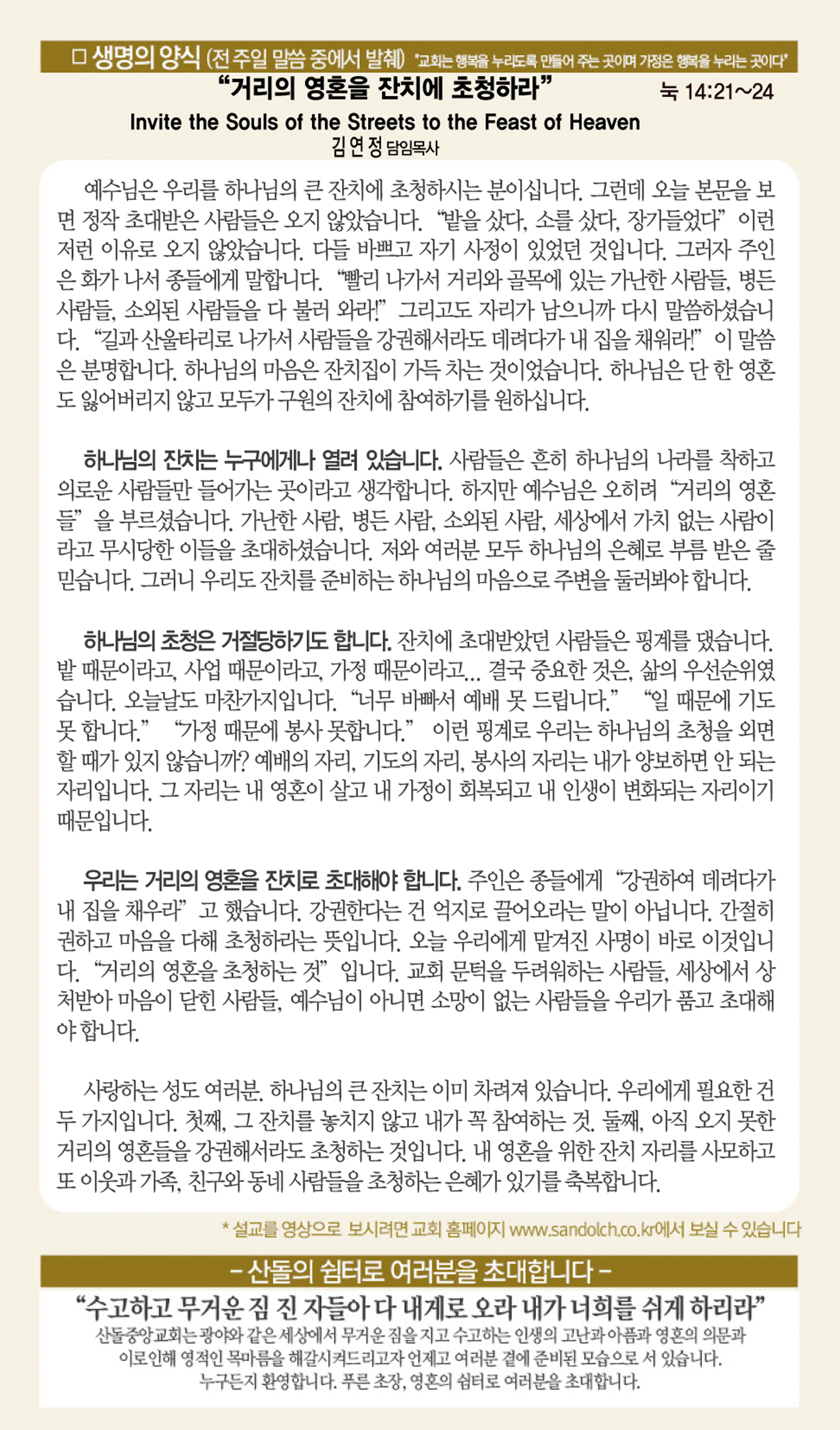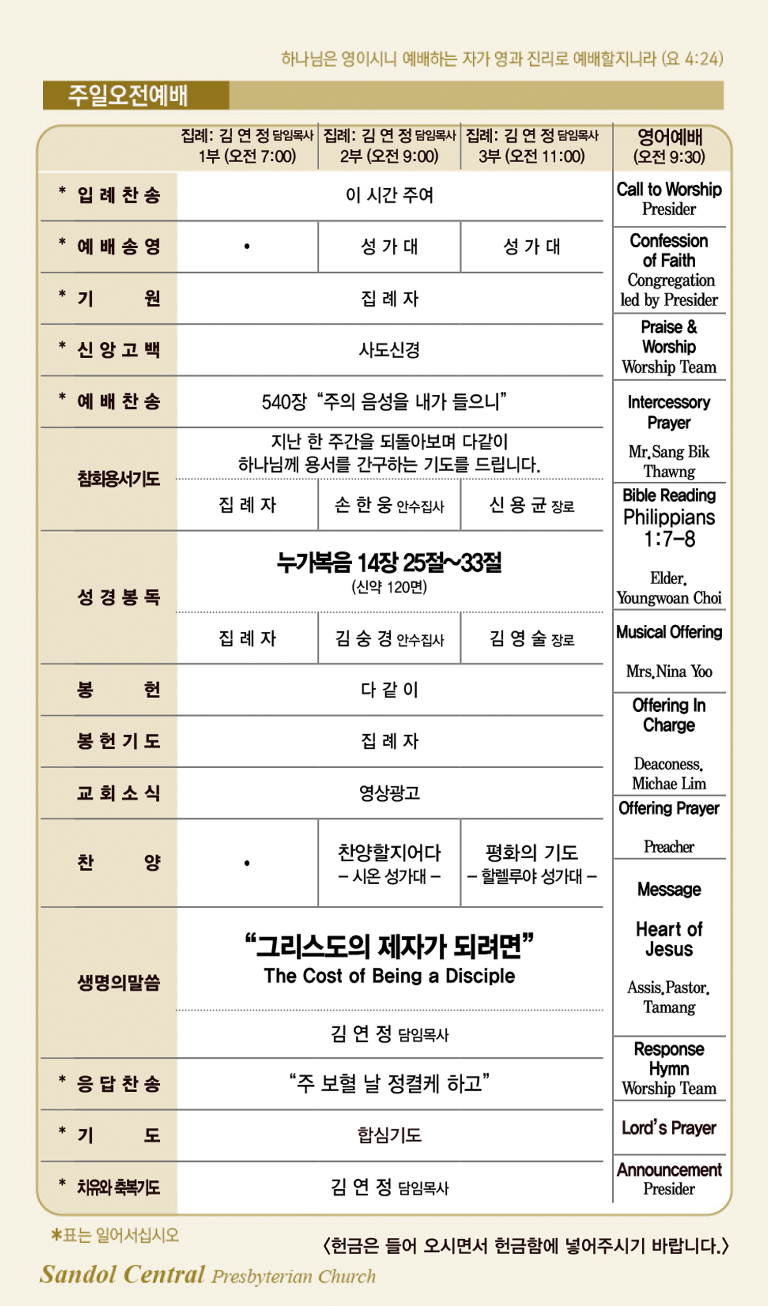 이전글 | 09월 28일 교회주보 | 운영자 | 2025.09.27 | 0 | 84 |