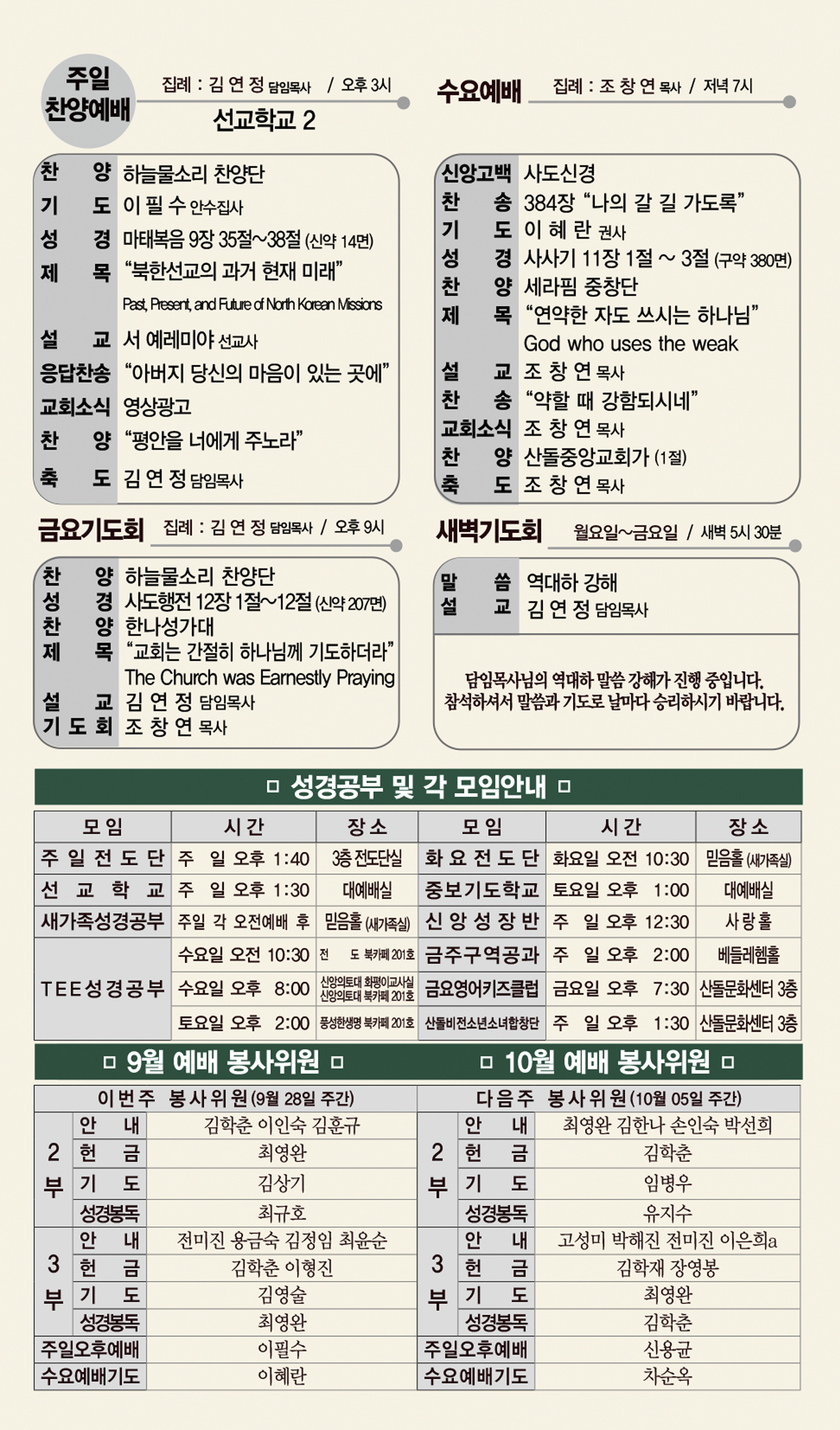 09월 28일 교회주보