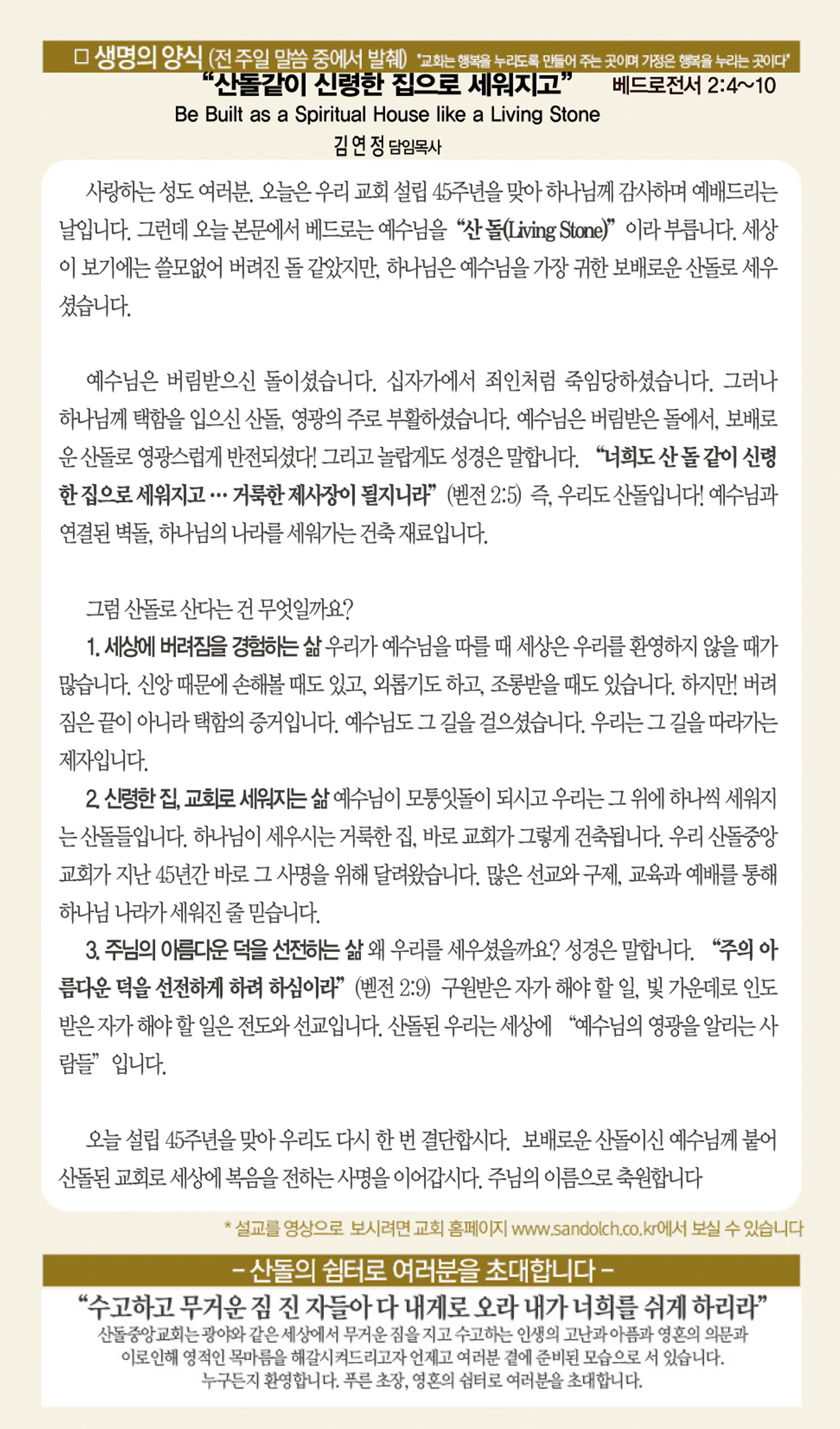 | 이전글 | 11월 16일 교회주보 | 운영자 | 2025.11.15 | 0 | 86 |