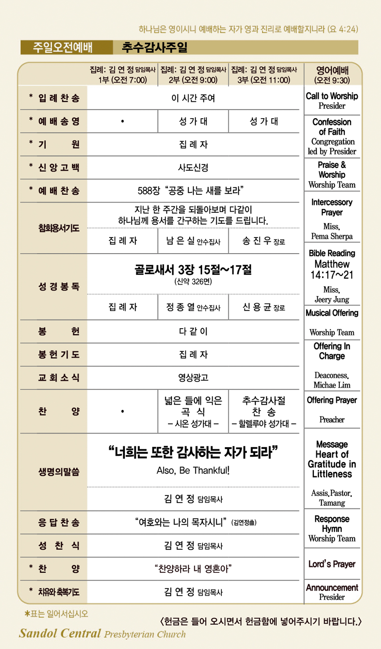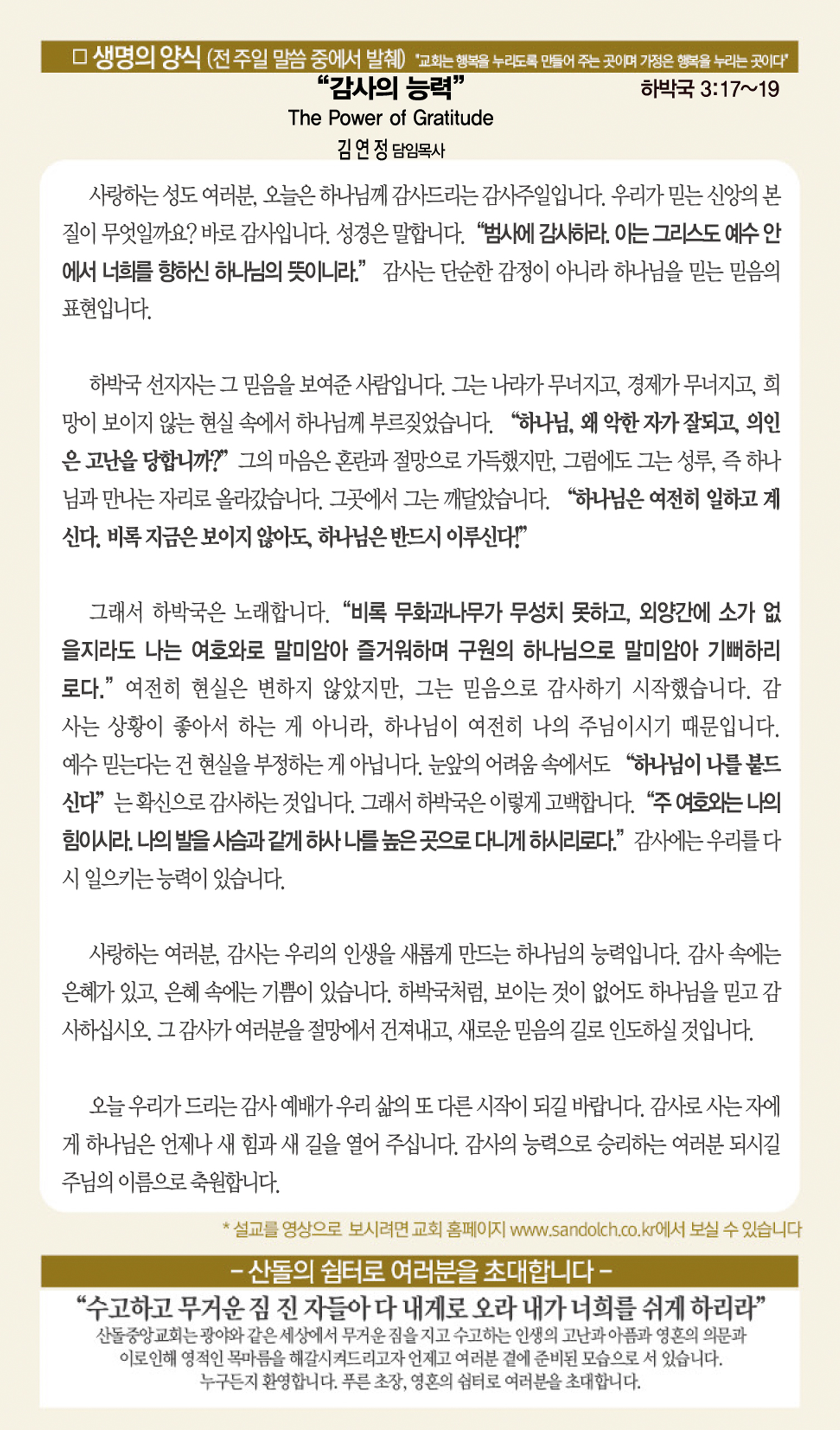 | 이전글 | 11월 23일 교회주보 | 운영자 | 2025.11.22 | 0 | 57 |