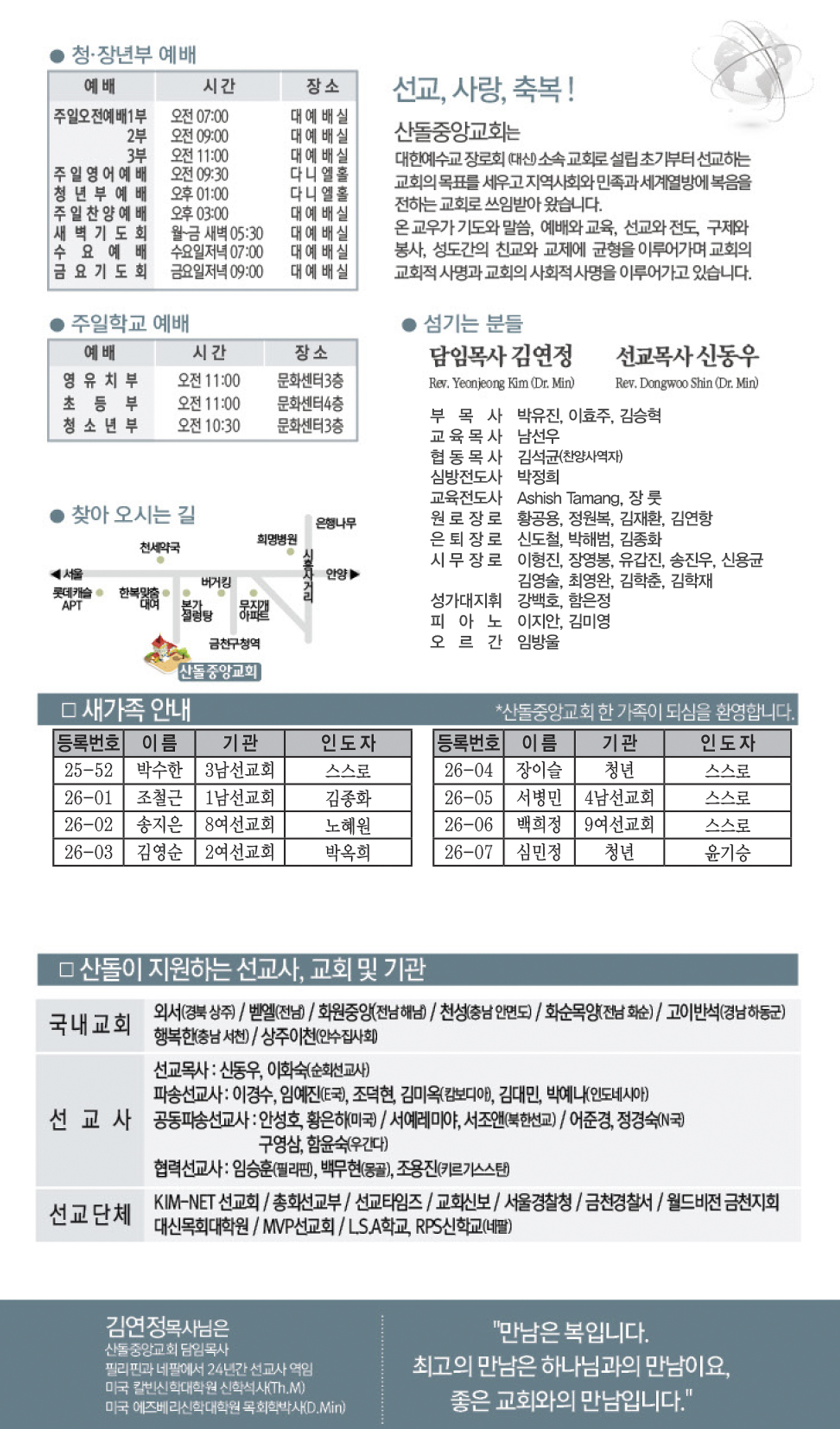 | 이전글 | 02월 15일 교회주보 | 운영자 | 2026.02.15 | 0 | 29 |