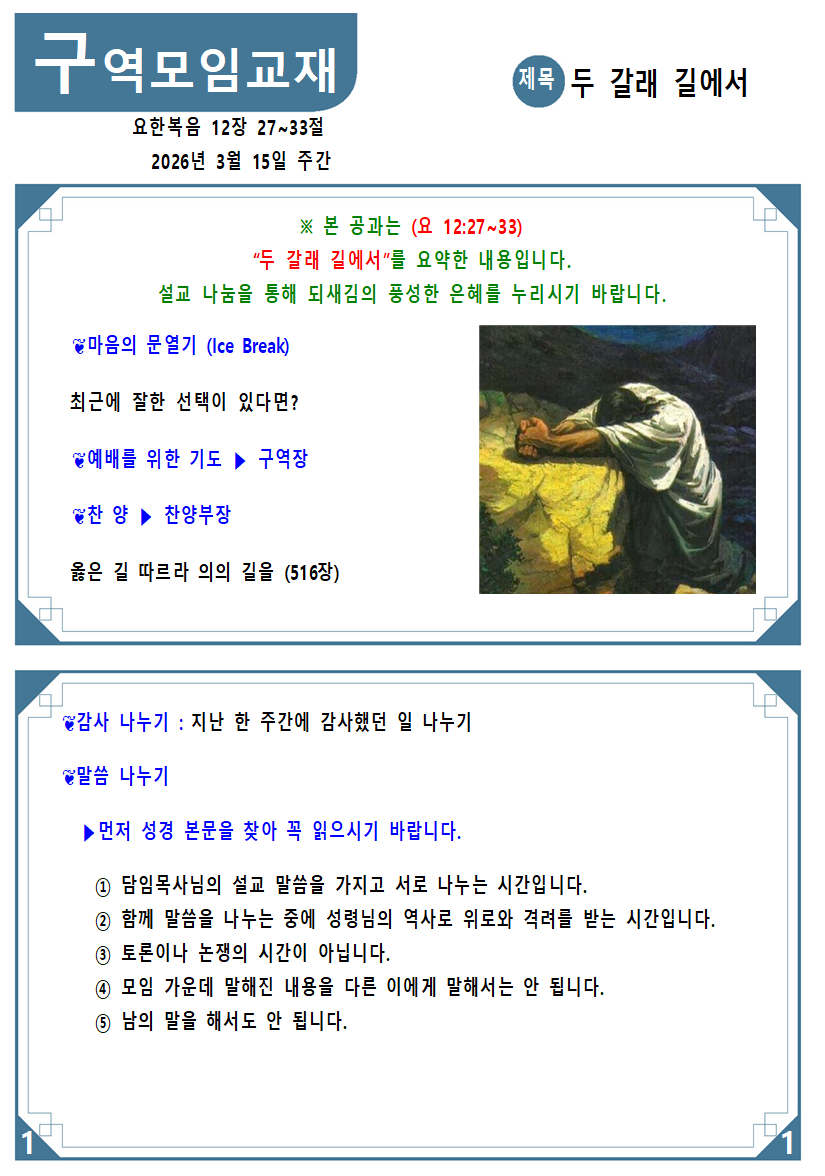 2026년 3월 15일 주간 구역모임교재 박유진 2026-03-14 추천 0 댓글 0 조회 25 http://sandolch.co.kr/bbs/bbsView/80/6615889 첨부파일 (0) 0