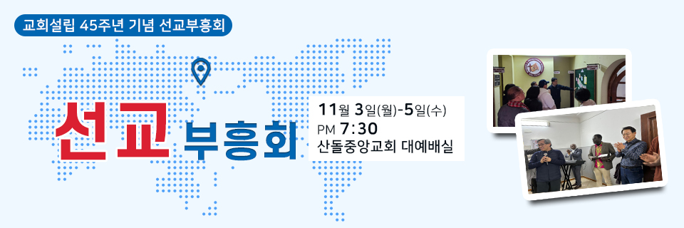 최근게시물 교회소식10월 26일 교회소식 교회소식10월 19일 교회소식 산돌새벽강단[역대하 강해 33] 고난 중에 회개와 참된 변화 교회학교 게시판[청소년부] 9월 예배풍경 교회학교 게시판[초등부] 9월 예배풍경