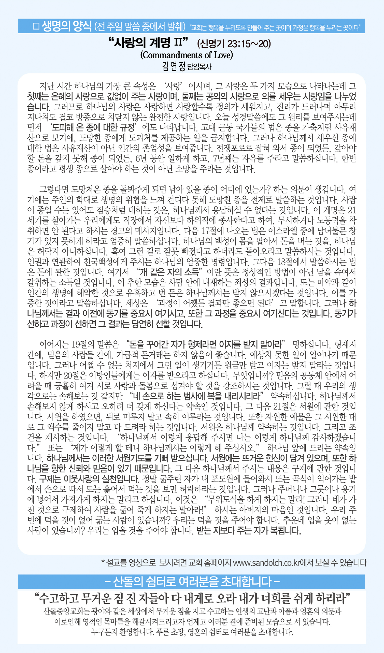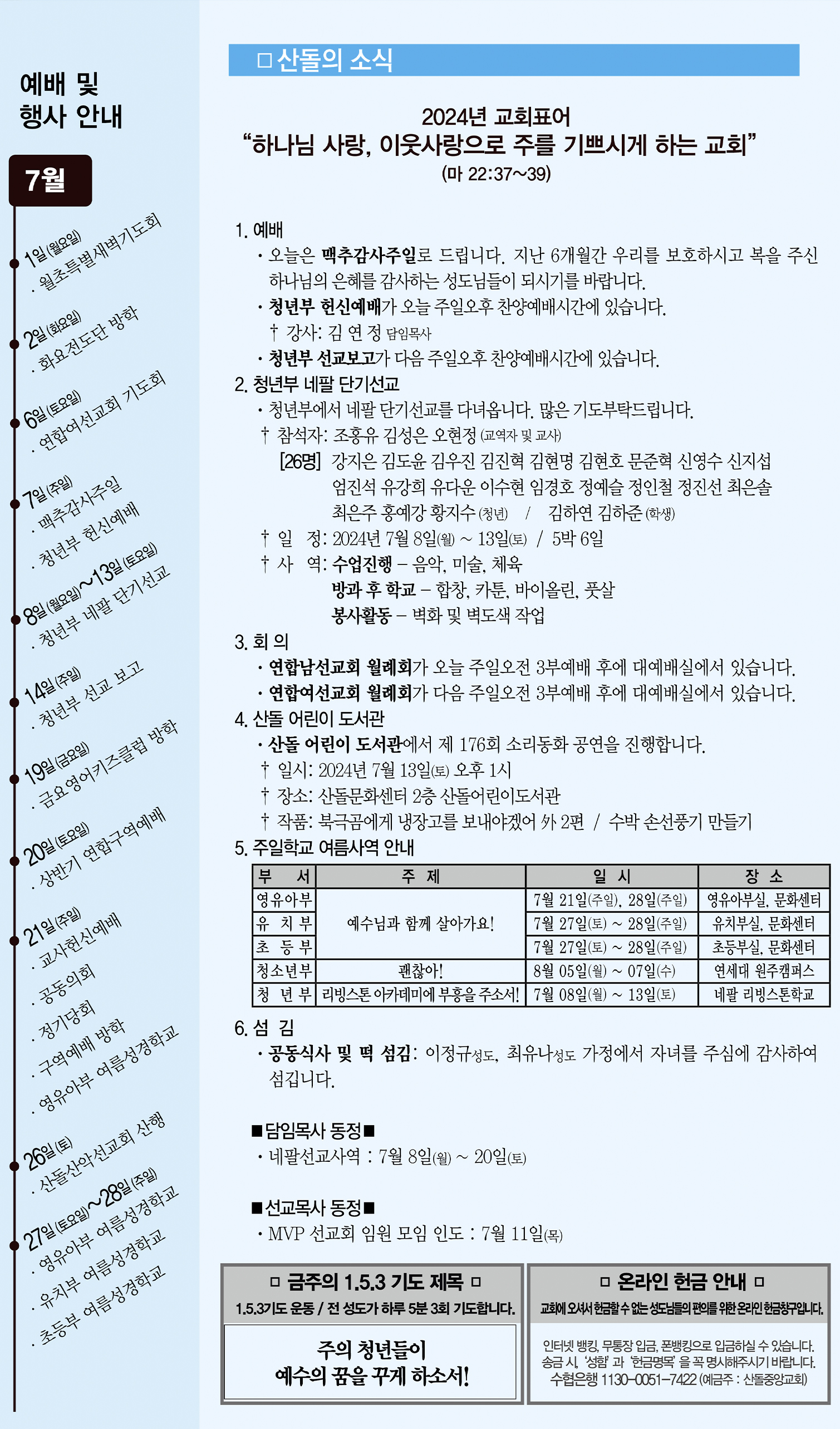 | 다음글 | 06월 30일 교회주보 | 운영자 | 2024.06.29 | 0 | 400 |
