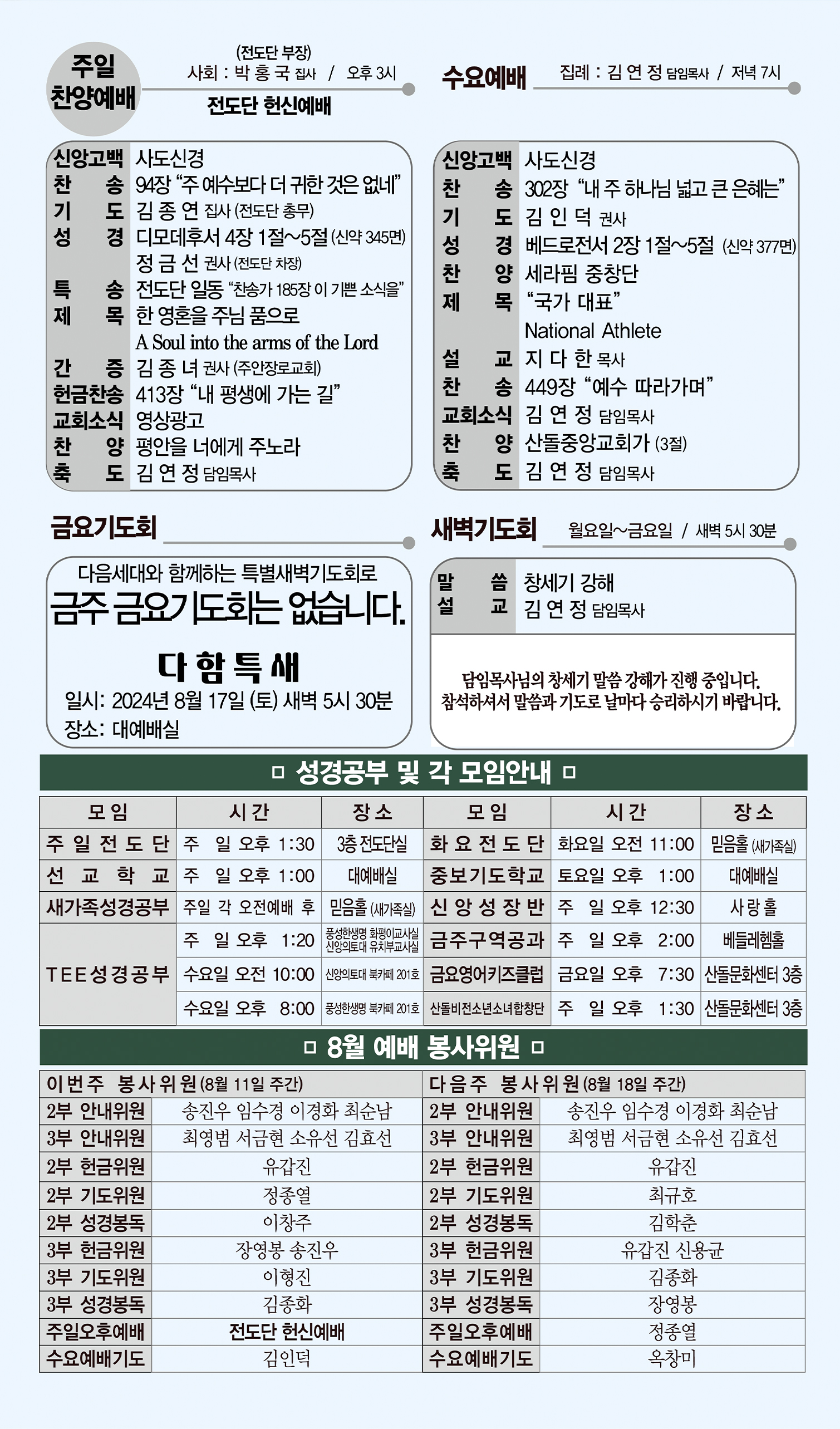 08월 11일 교회주보