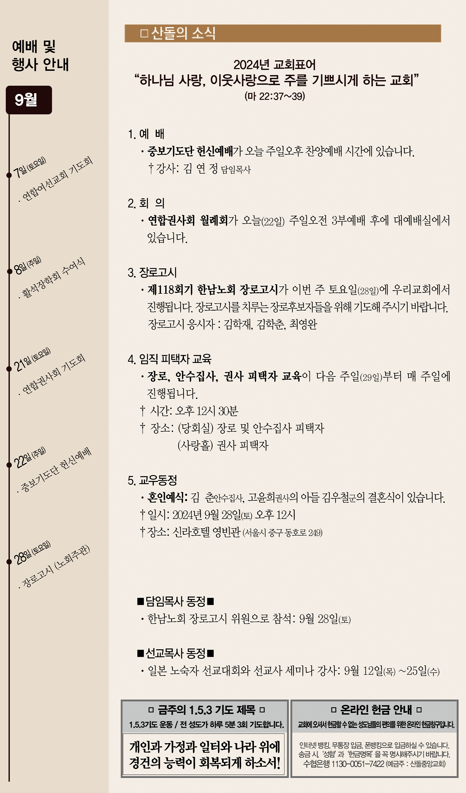 09월 22일 교회주보