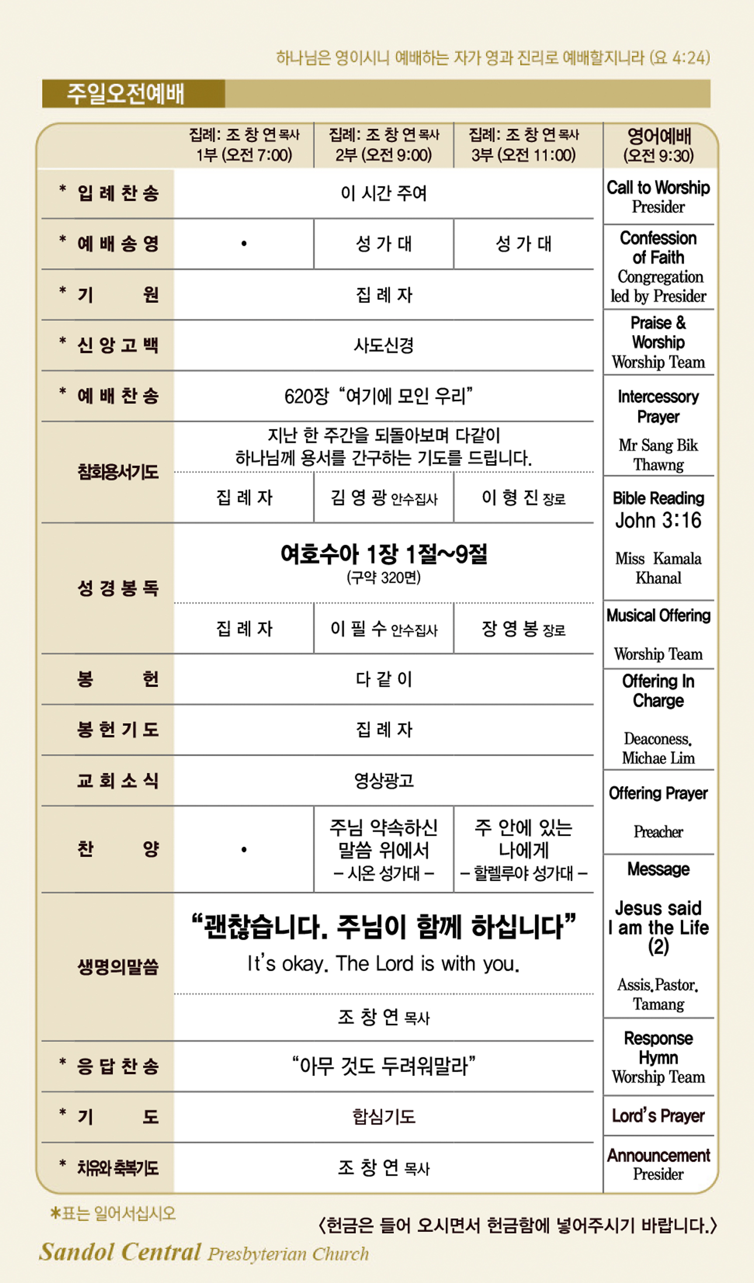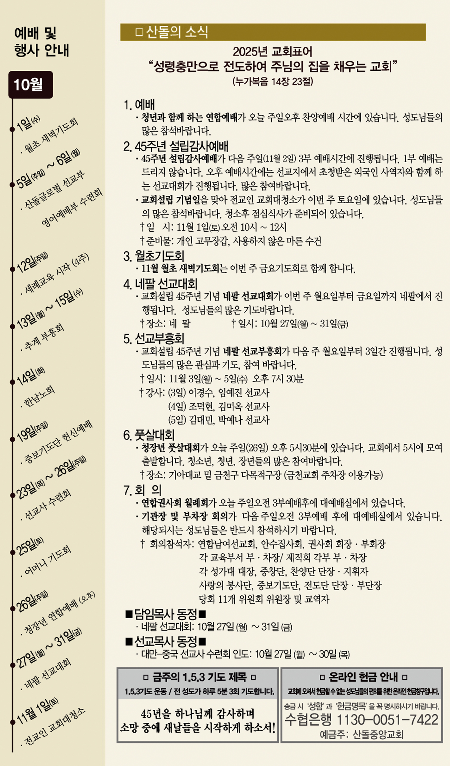 | 다음글 | 10월 19일 교회주보 | 운영자 | 2025.10.18 | 0 | 120 |
