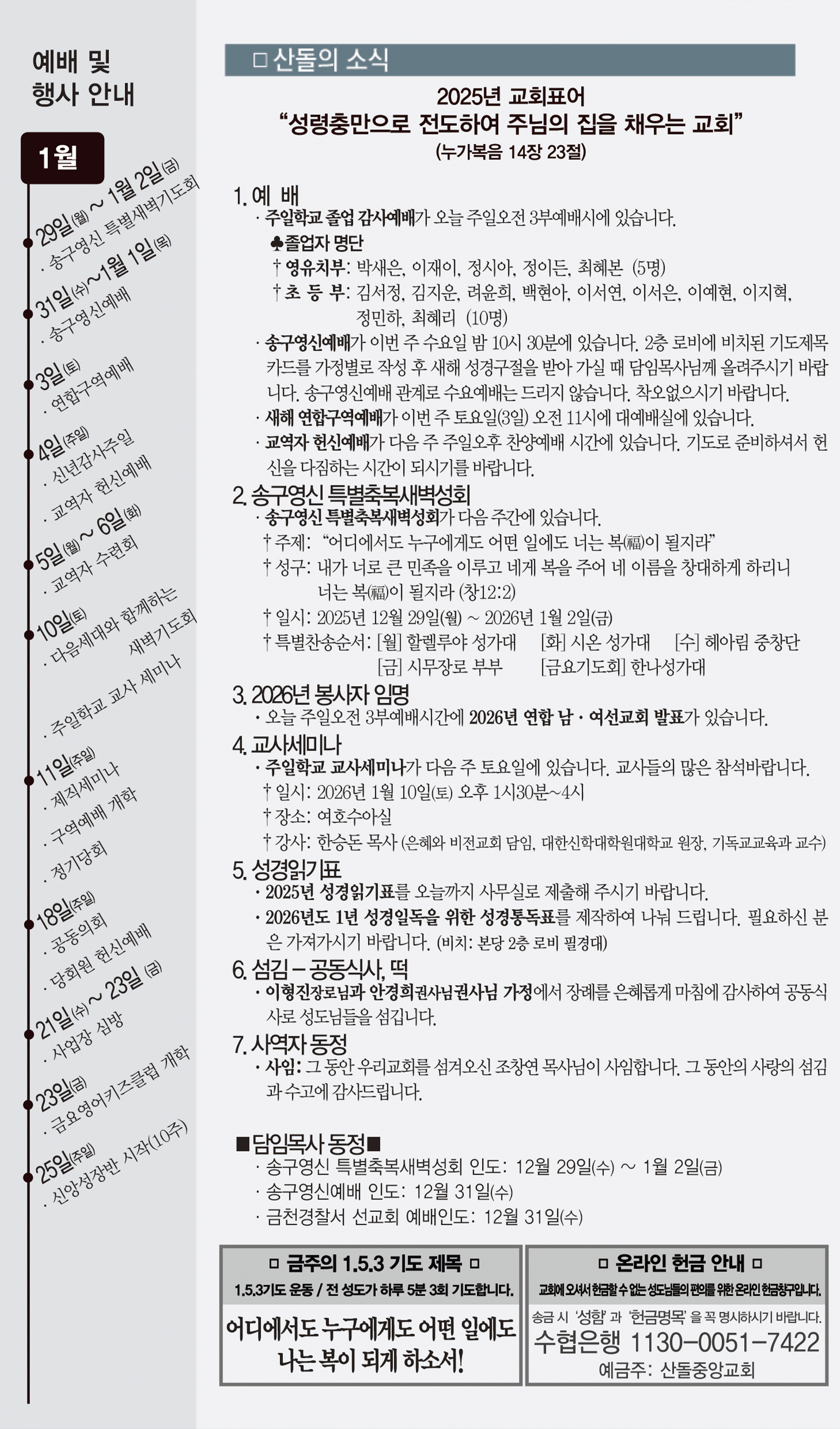 | 이전글 | 01월 11일 교회주보 | 운영자 | 2026.01.10 | 0 | 164 |