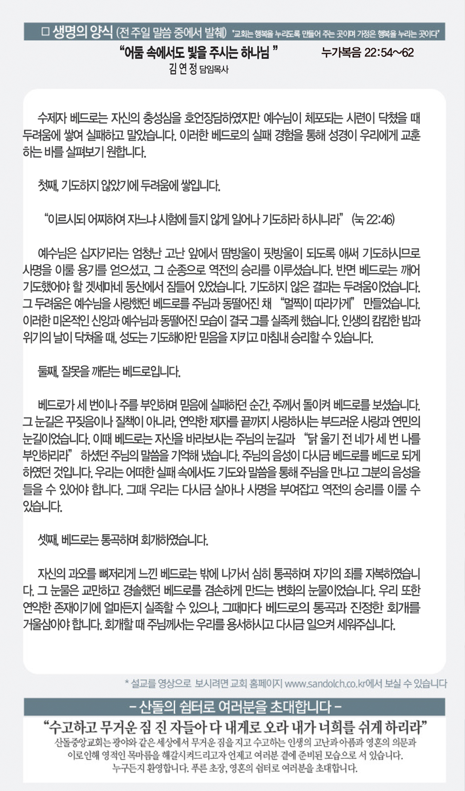 | 이전글 | 02월 22일 교회주보 | 운영자 | 2026.02.21 | 0 | 95 |