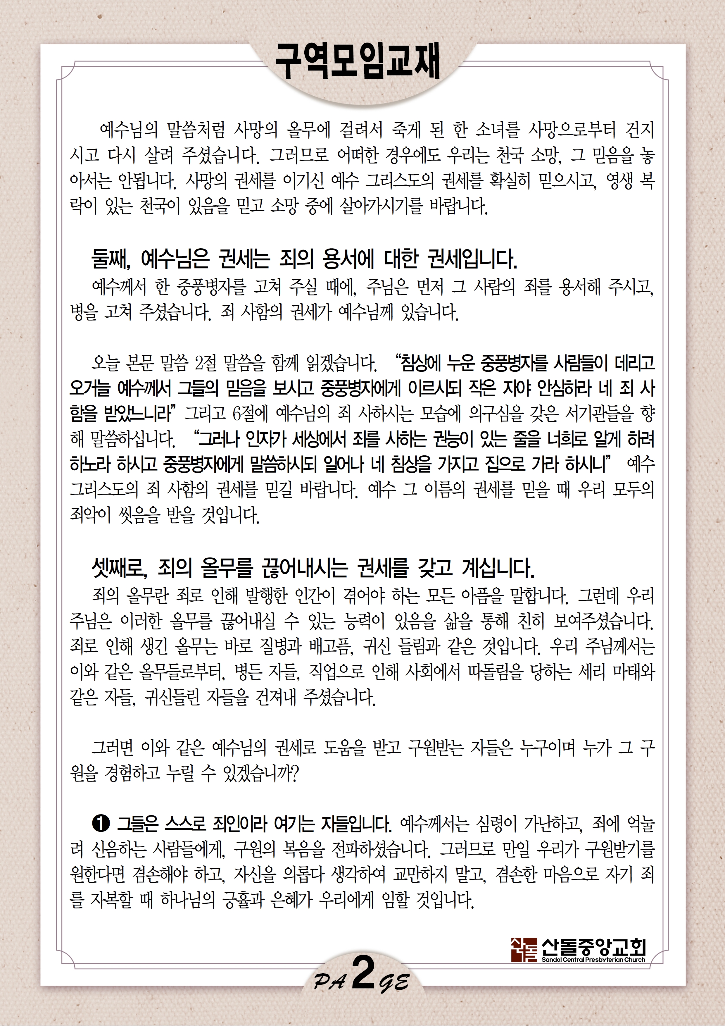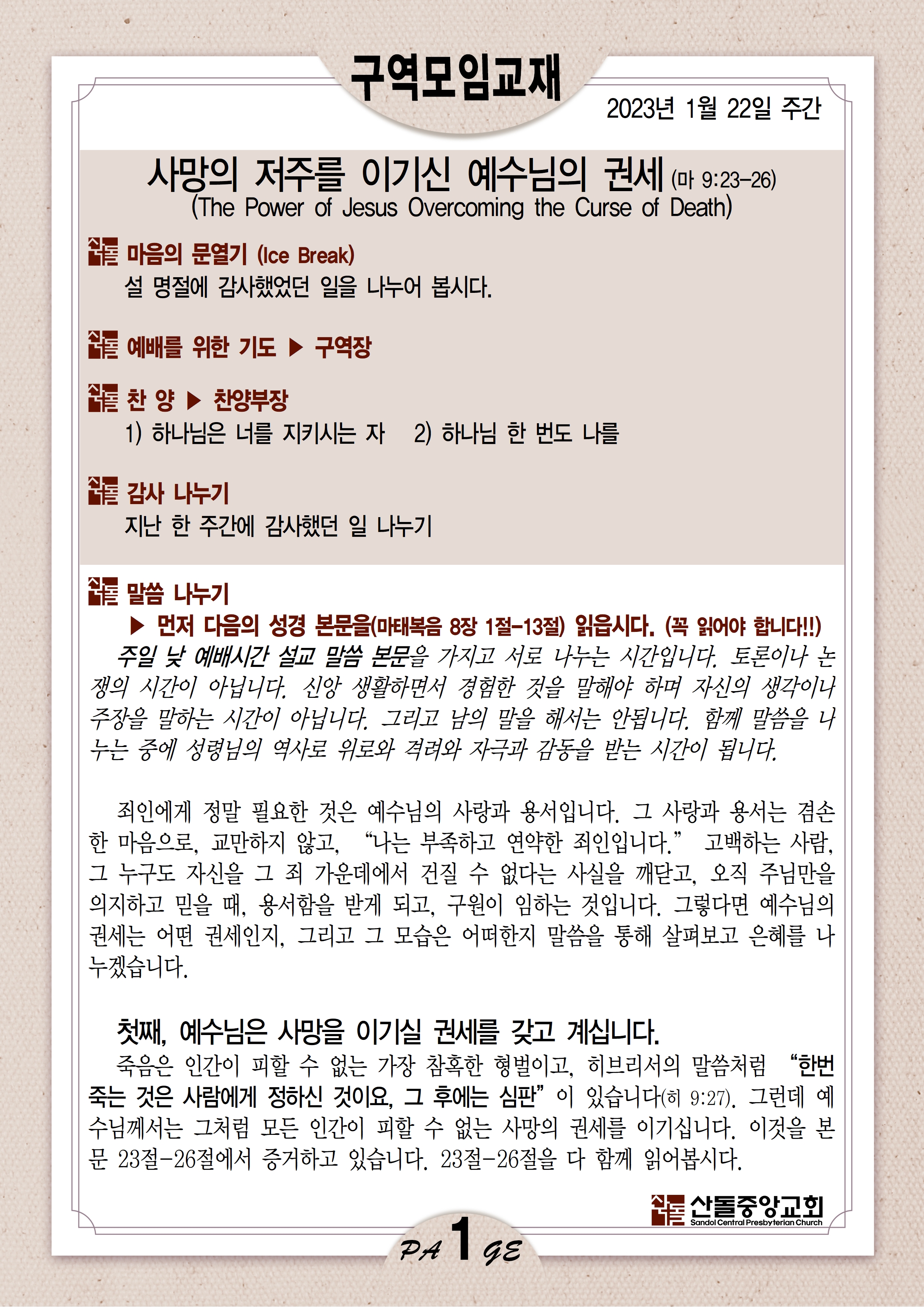 01월 22일 주간 구역모임교재