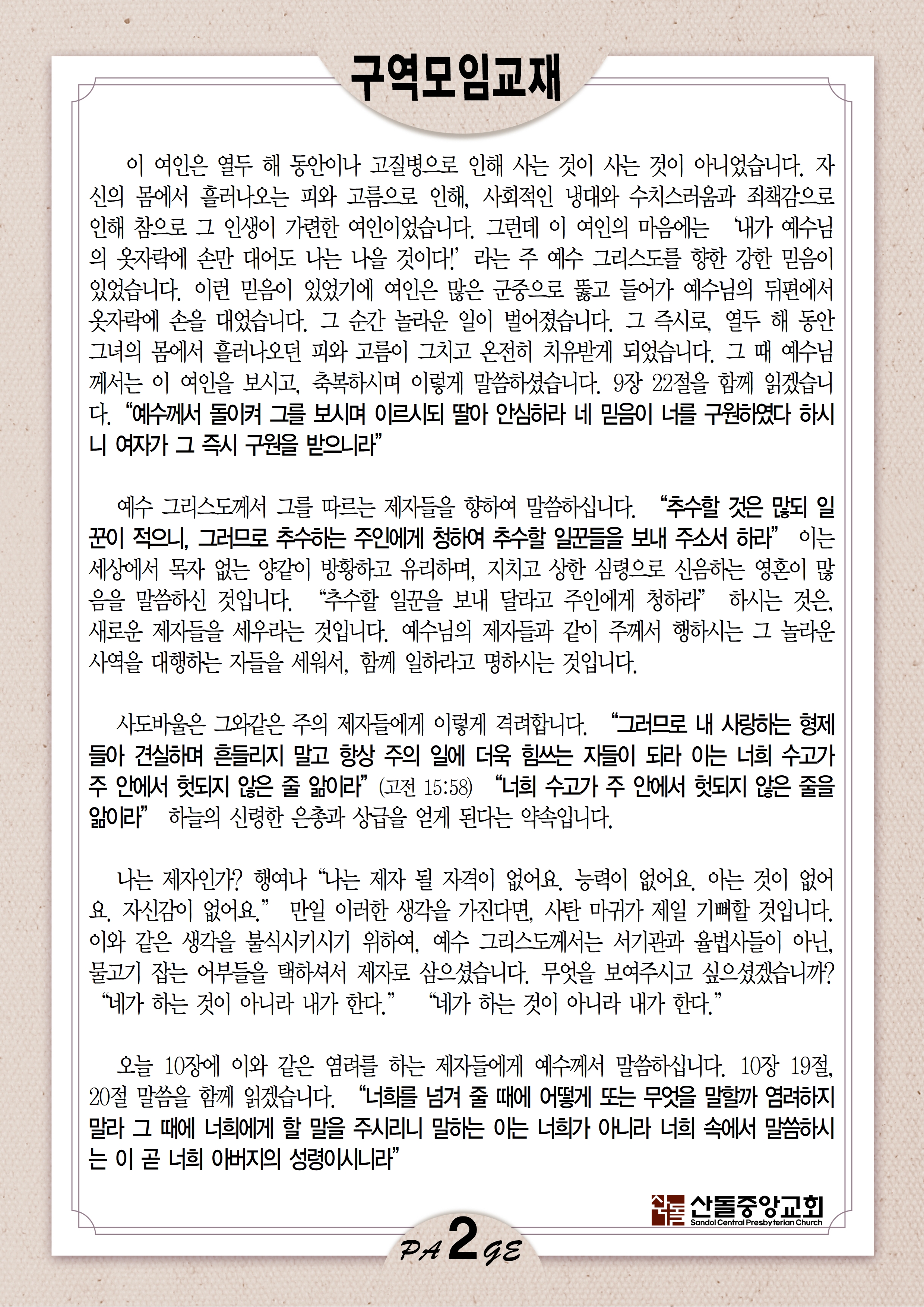 | 이전글 | 01월 12일 주간 구역모임교재 | 조창연 | 2023.02.17 | 0 | 418 |