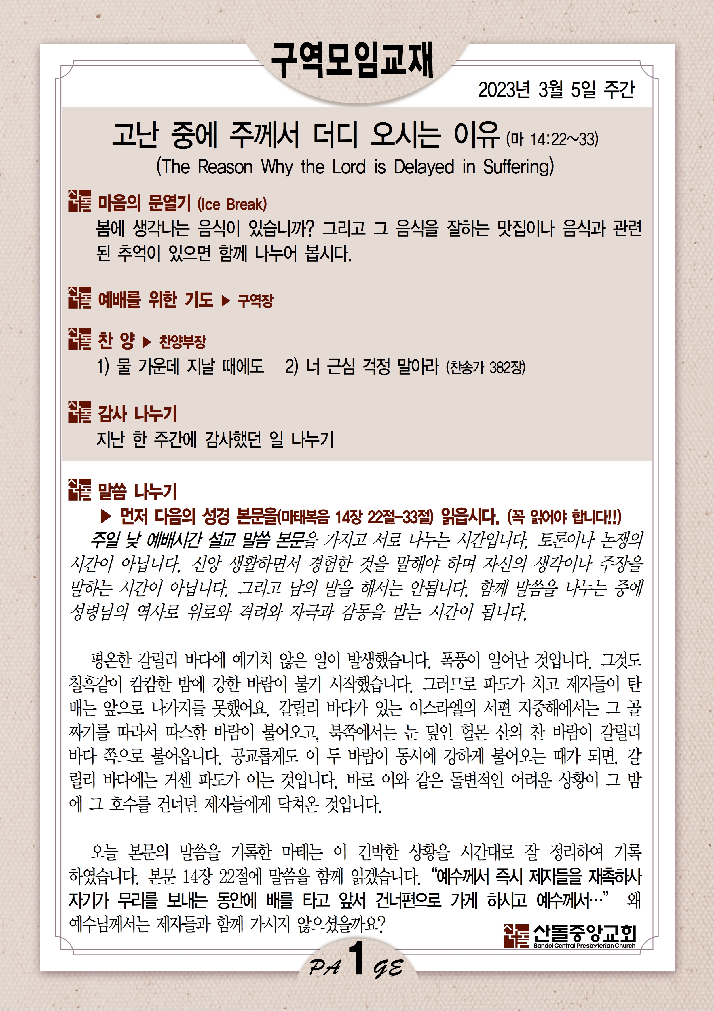 03월 05일 주간 구역모임교재