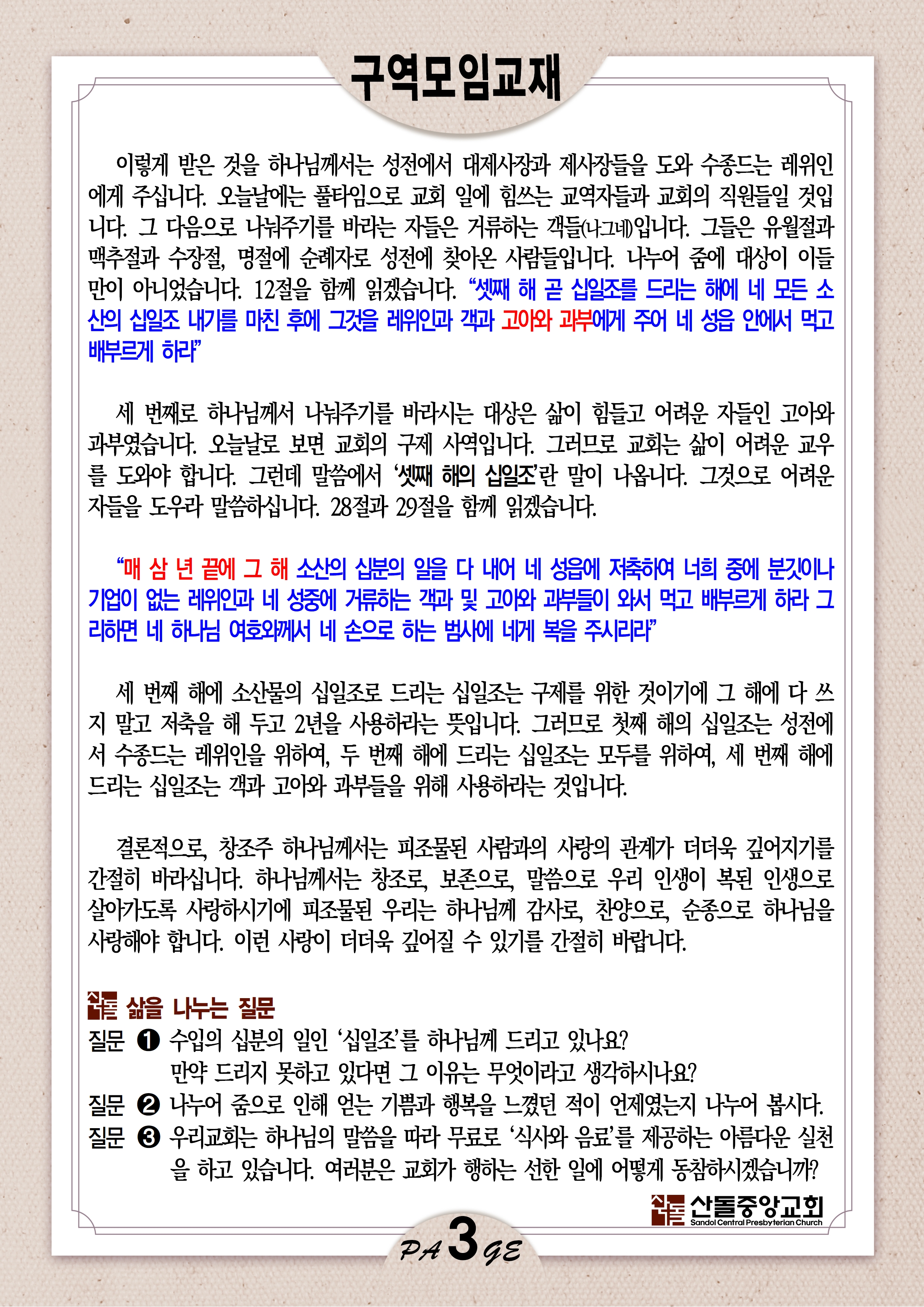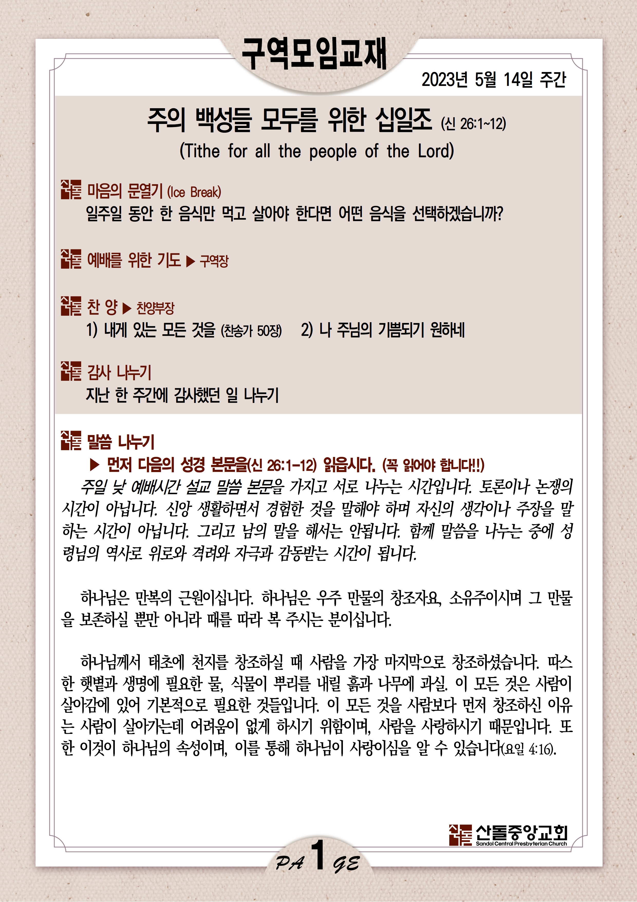 | 이전글 | 5월 21일 주간 구역모임교재 | 조창연 | 2023.05.19 | 0 | 409 |