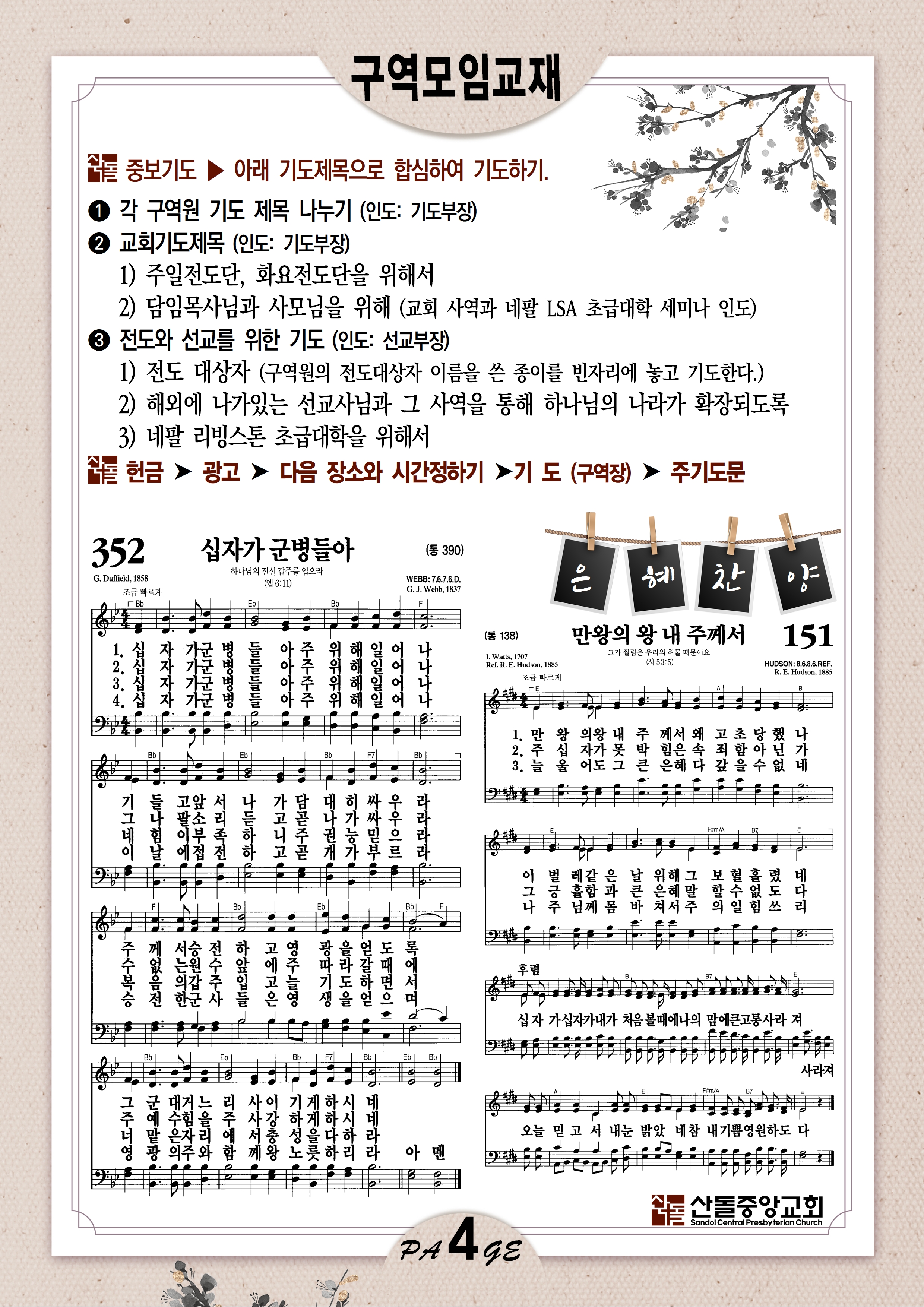 | 다음글 | 7월 16일 주간 구역모임교재 | 조창연 | 2023.07.16 | 0 | 454 |
