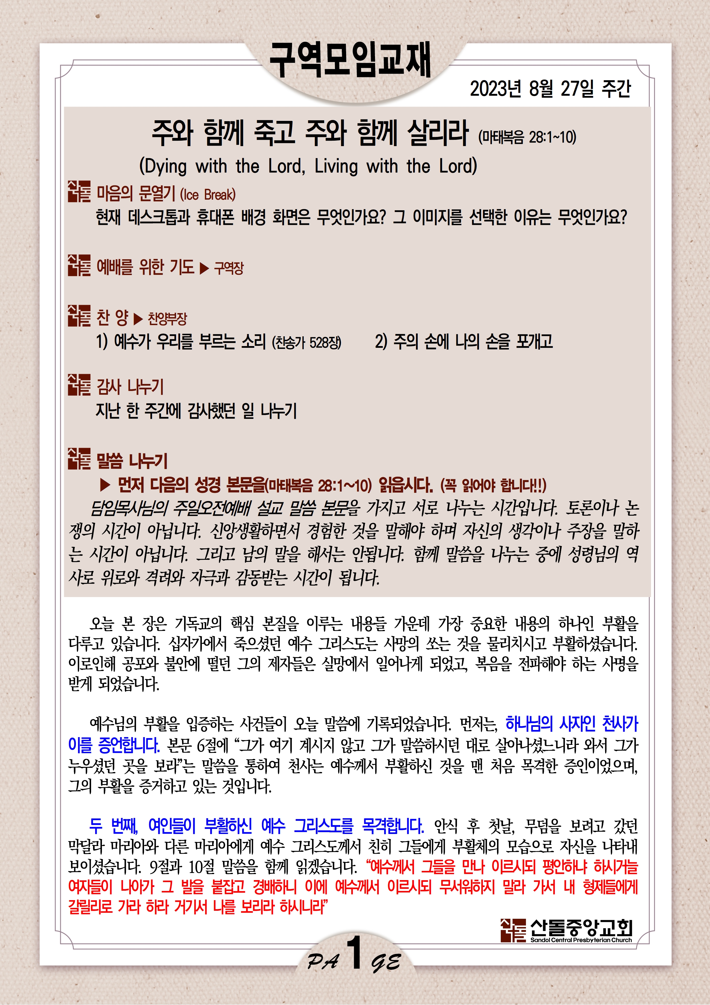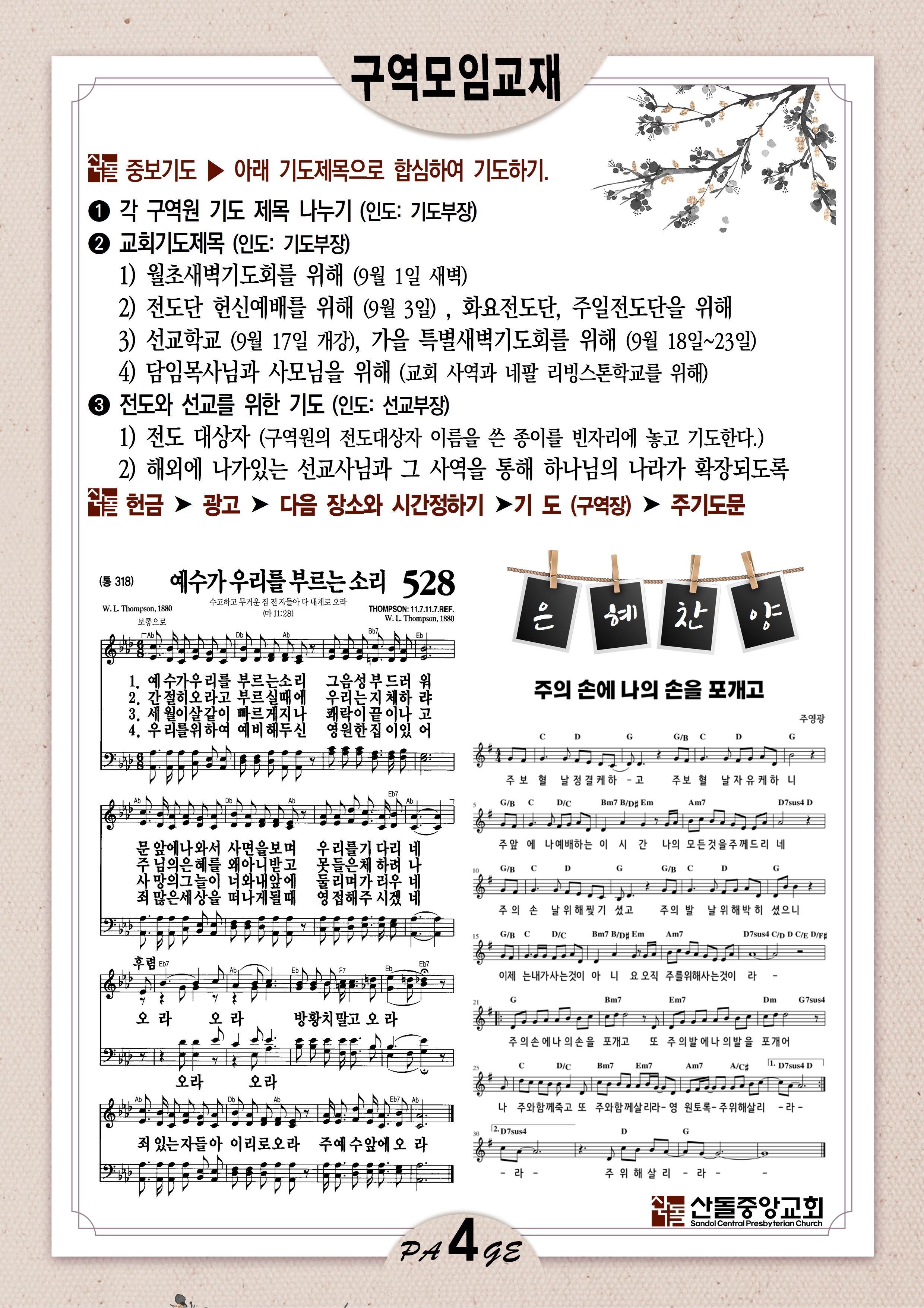 | 이전글 | 9월 3일 주간 구역모임교재 | 조창연 | 2023.09.03 | 0 | 436 |