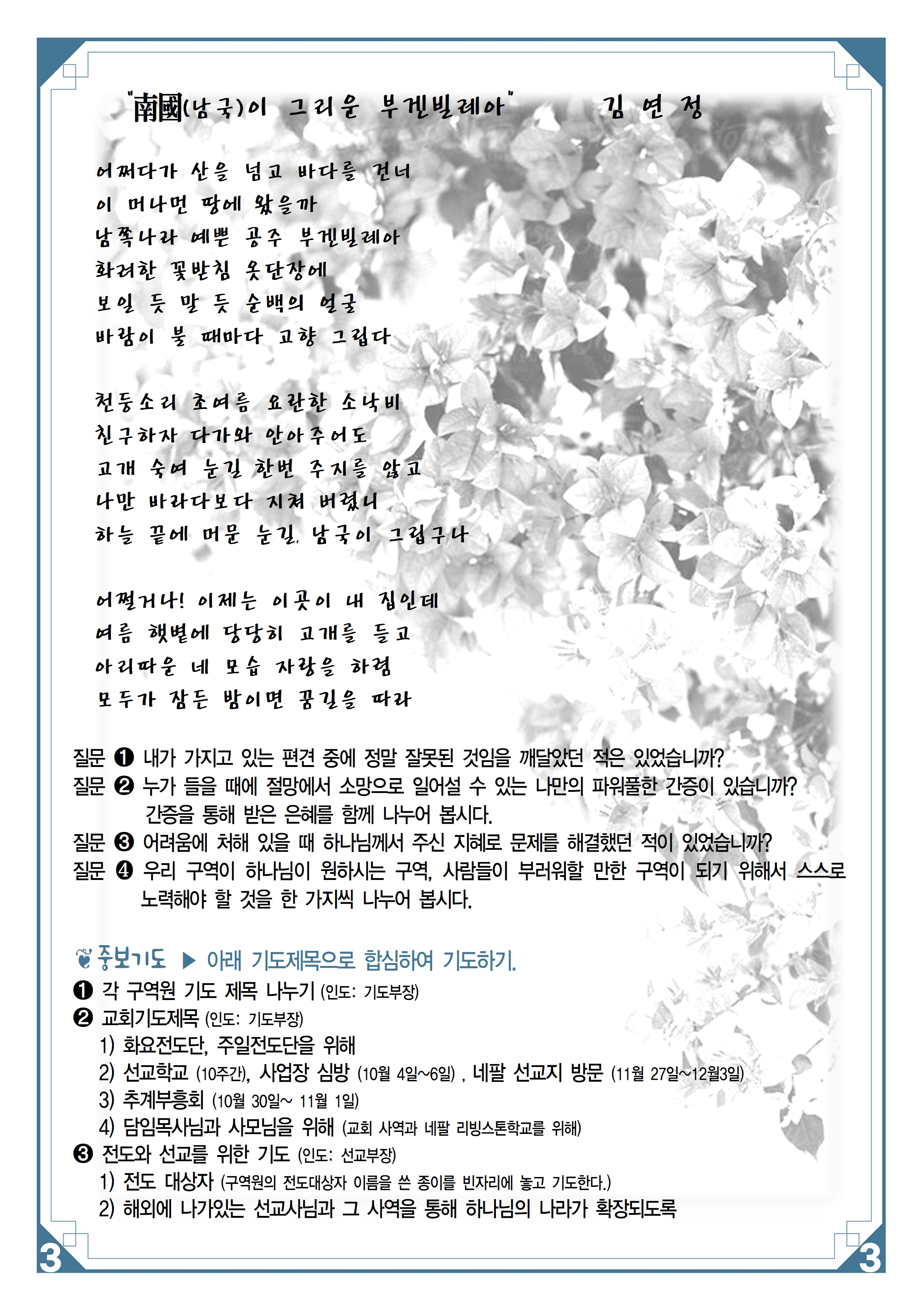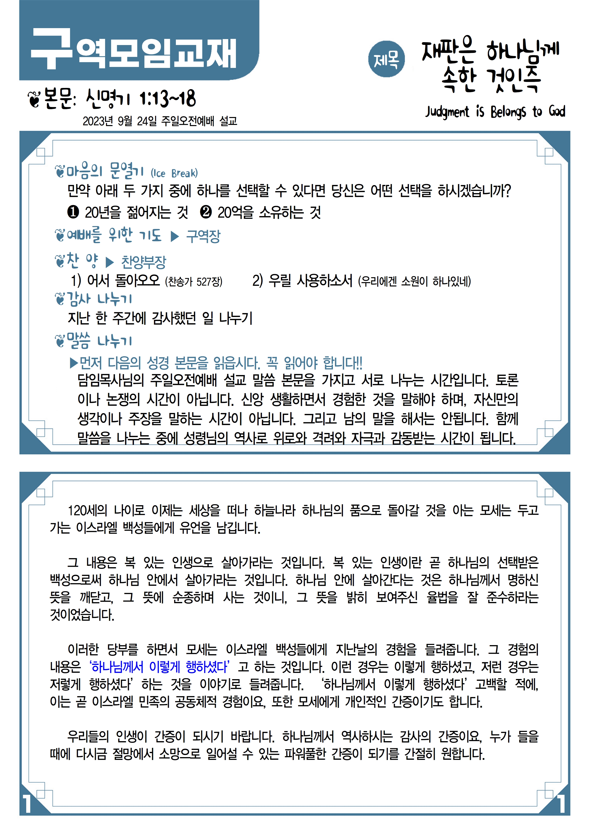 | 이전글 | 10월 15일 주간 구역모임교재 | 조창연 | 2023.10.18 | 0 | 297 |
