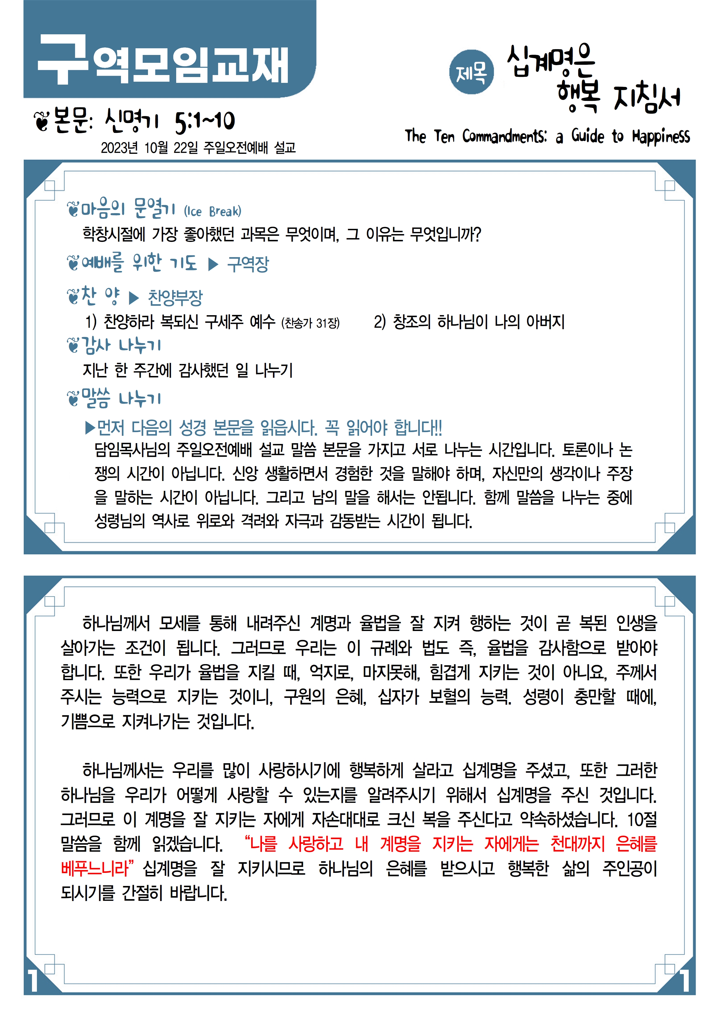 10월 22일 주간 구역모임교재