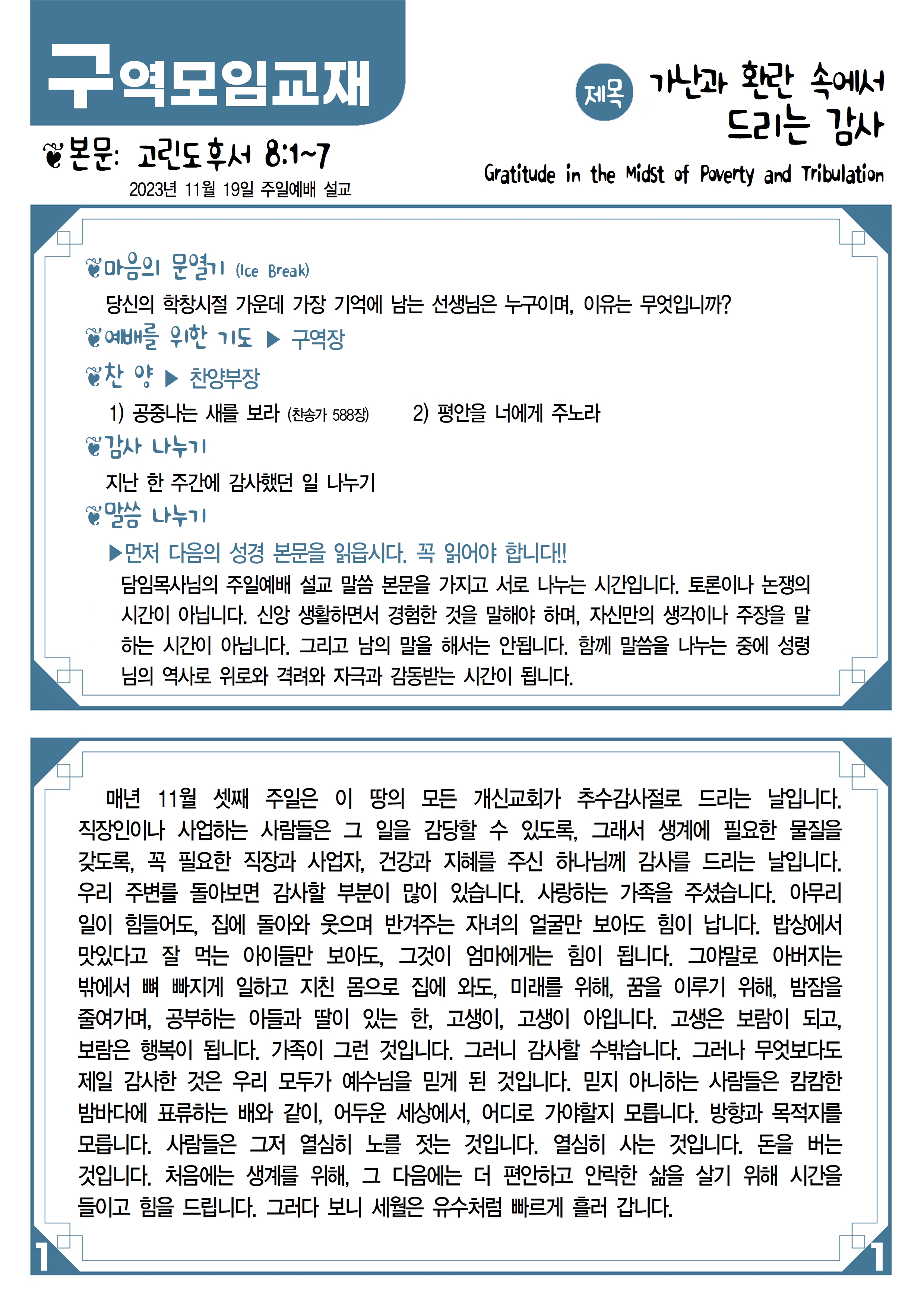 11월 19일 주간 구역모임교재