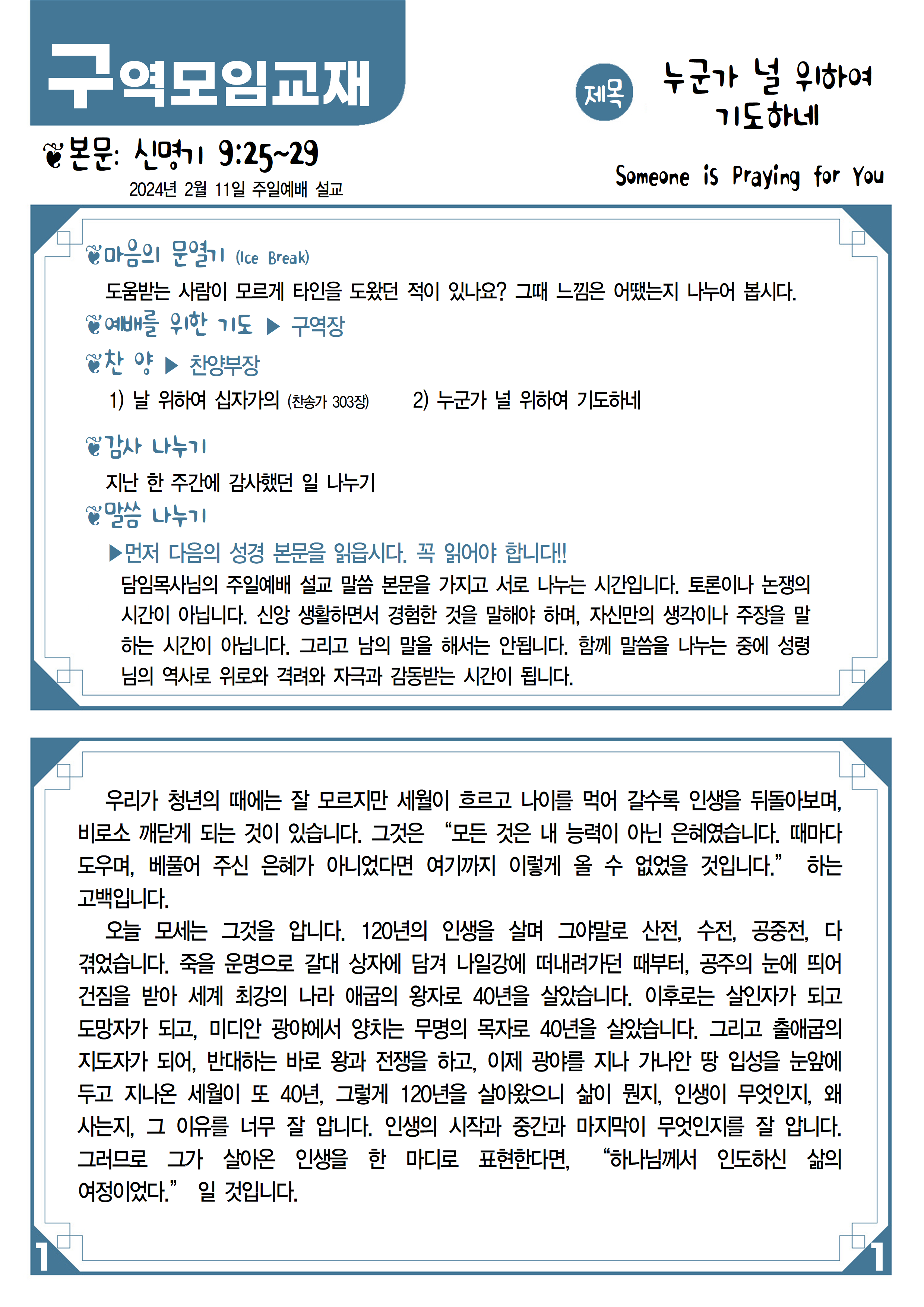 2024년 2월 11일 주간 구역모임교재