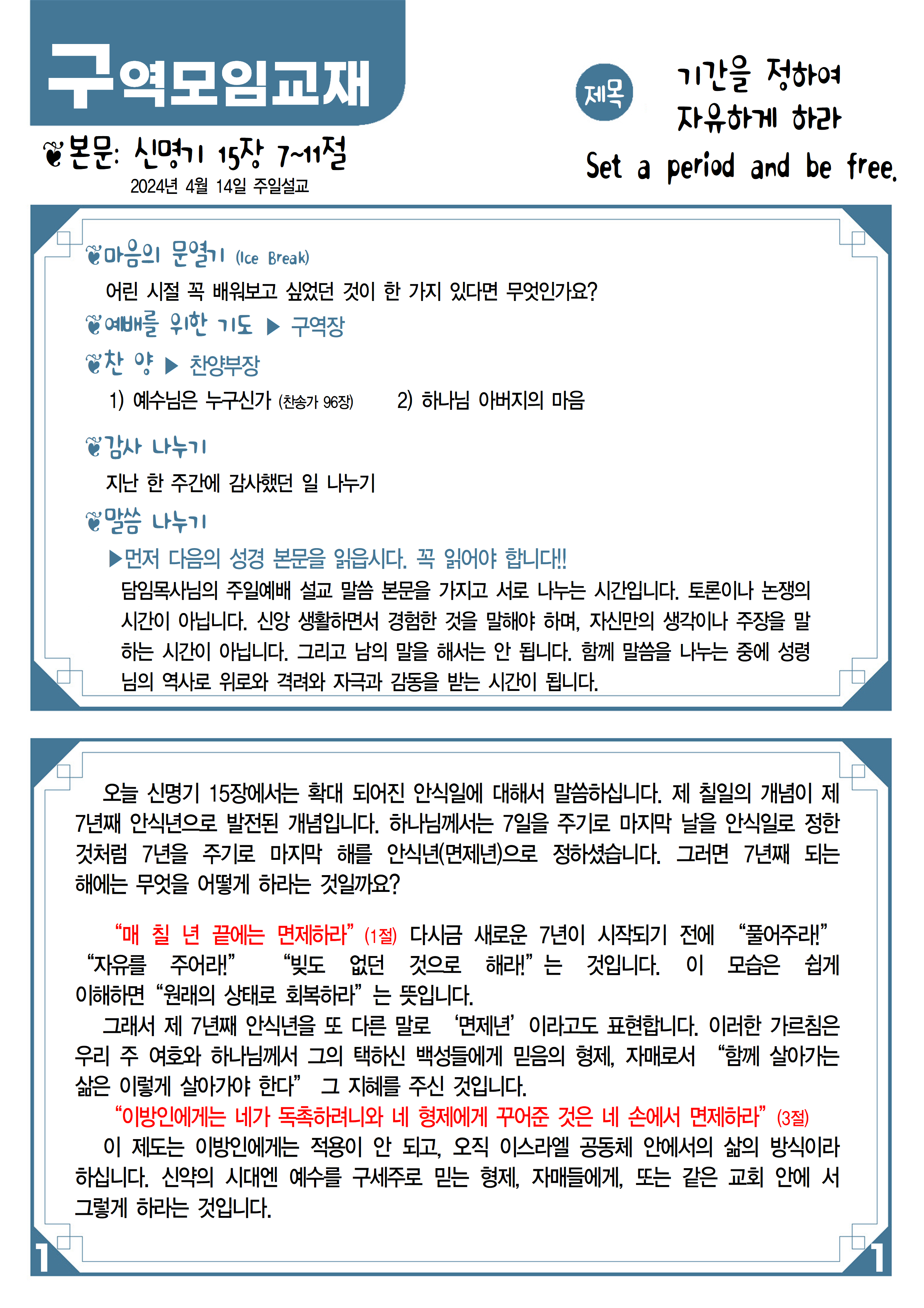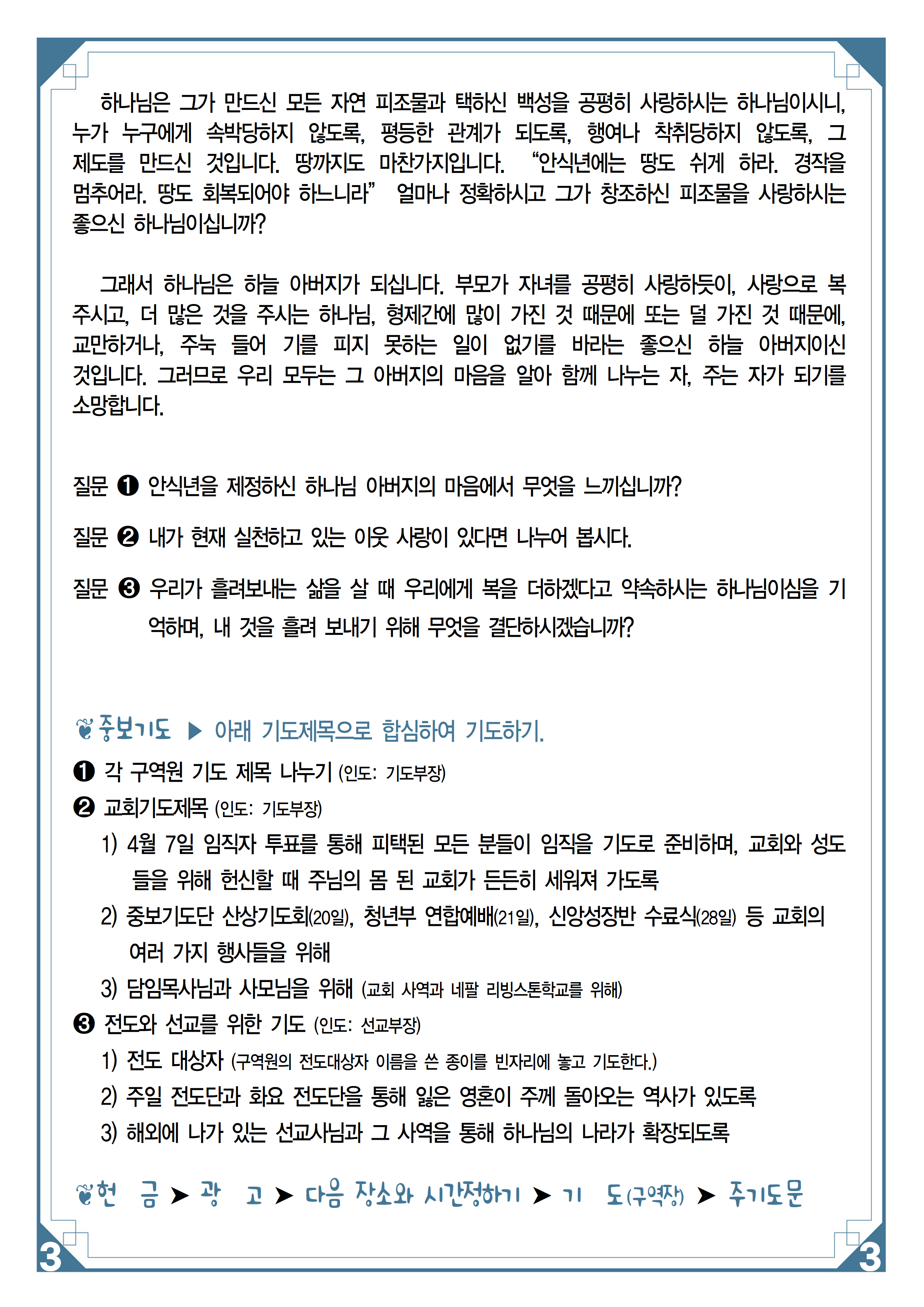 | 다음글 | 2024년 4월 7일 주간 구역모임교재 | 조홍유 | 2024.04.09 | 1 | 305 |
