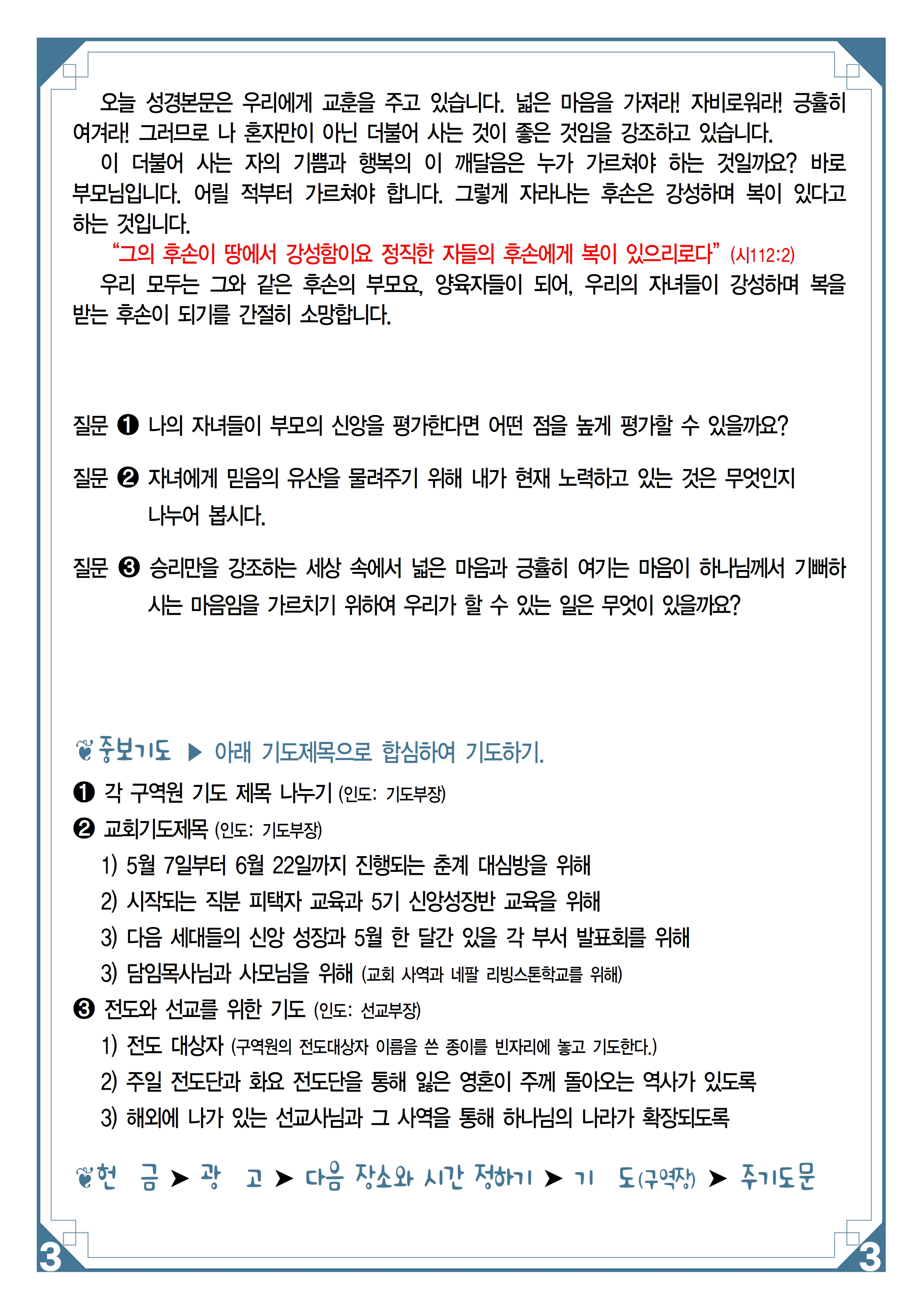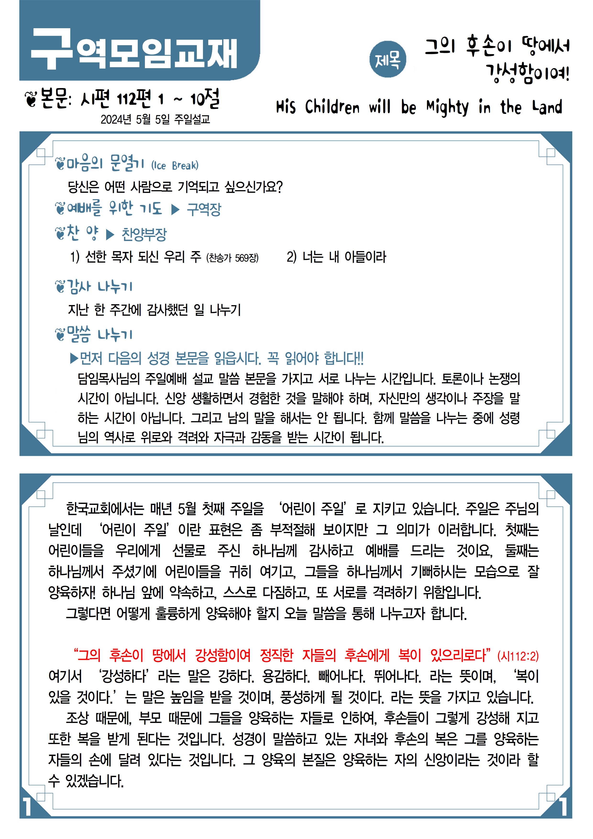 | 이전글 | 2024년 5월 12일 주간 구역모임교재 | 조홍유 | 2024.05.17 | 1 | 290 |