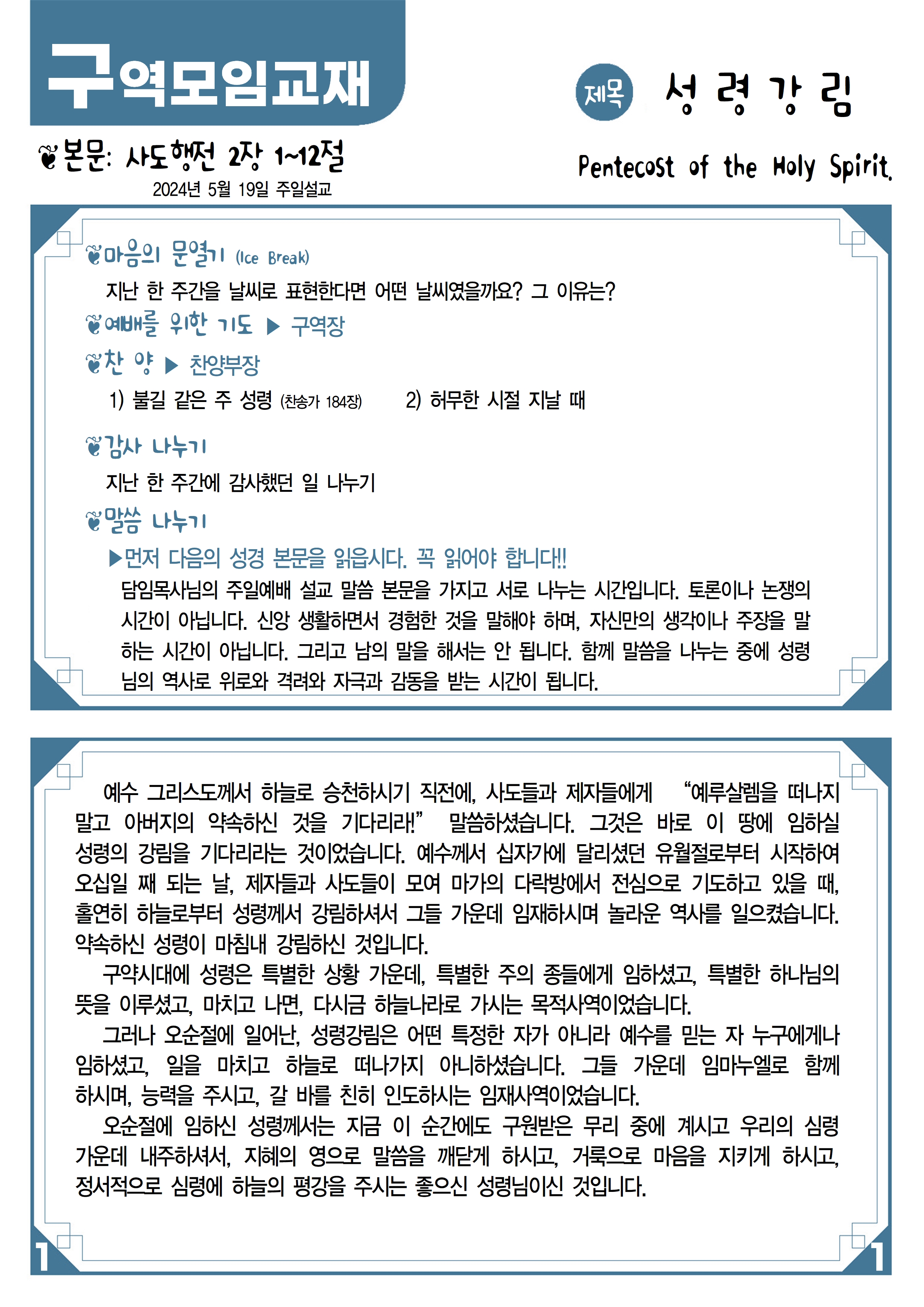 | 다음글 | 2024년 5월 12일 주간 구역모임교재 | 조홍유 | 2024.05.17 | 1 | 289 |