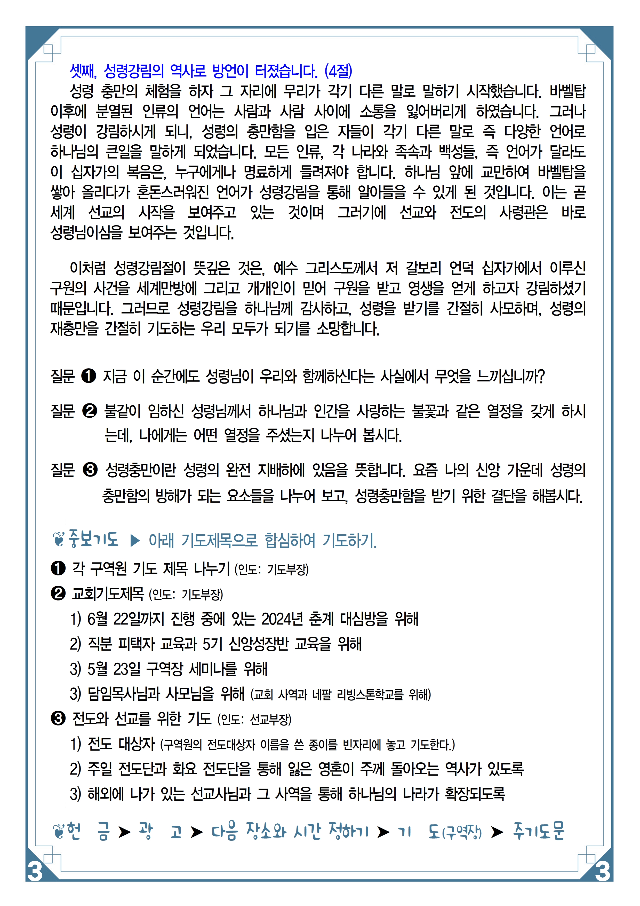 | 이전글 | 2024년 5월 26일 주간 구역모임교재 | 조홍유 | 2024.05.26 | 1 | 365 |
