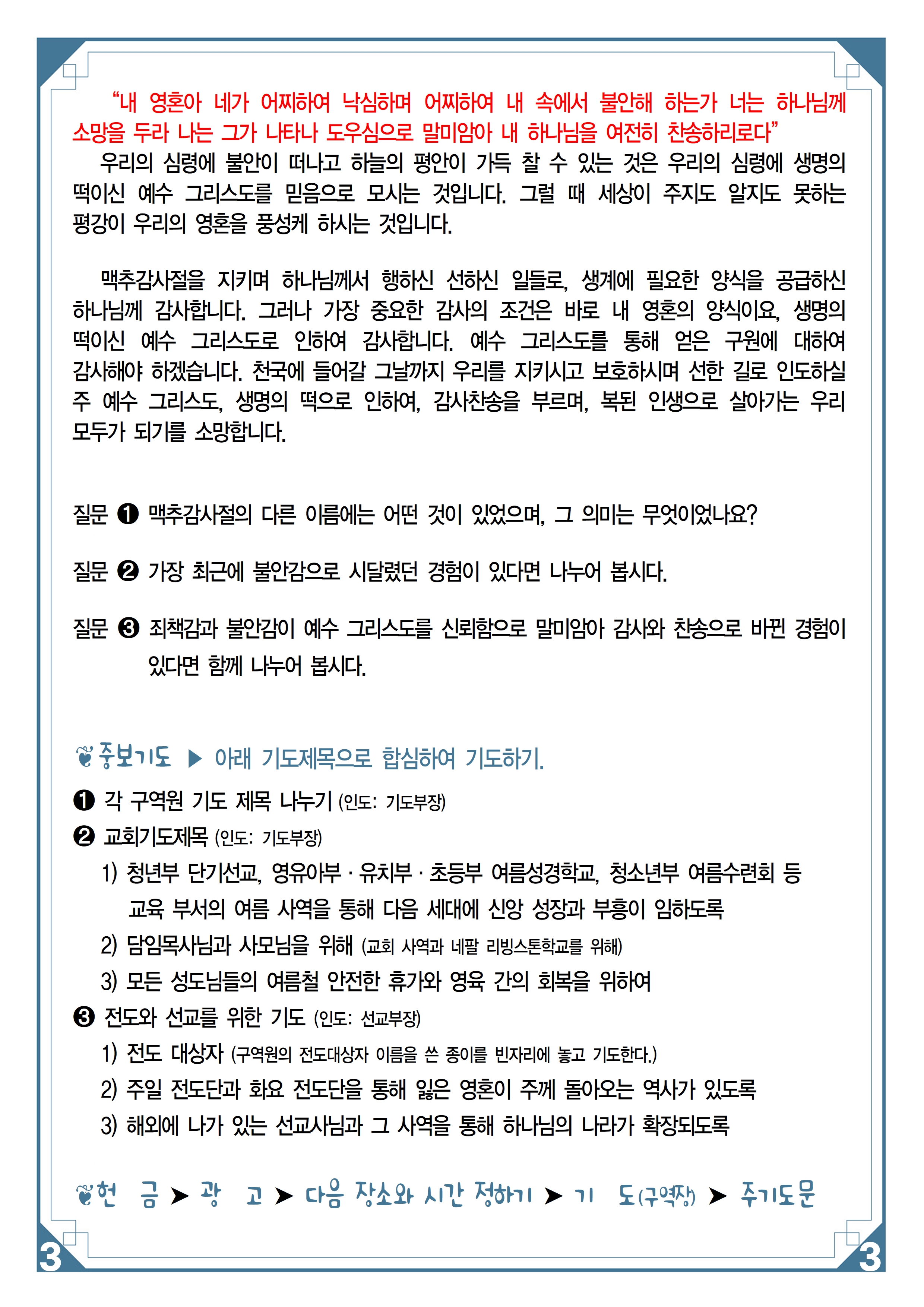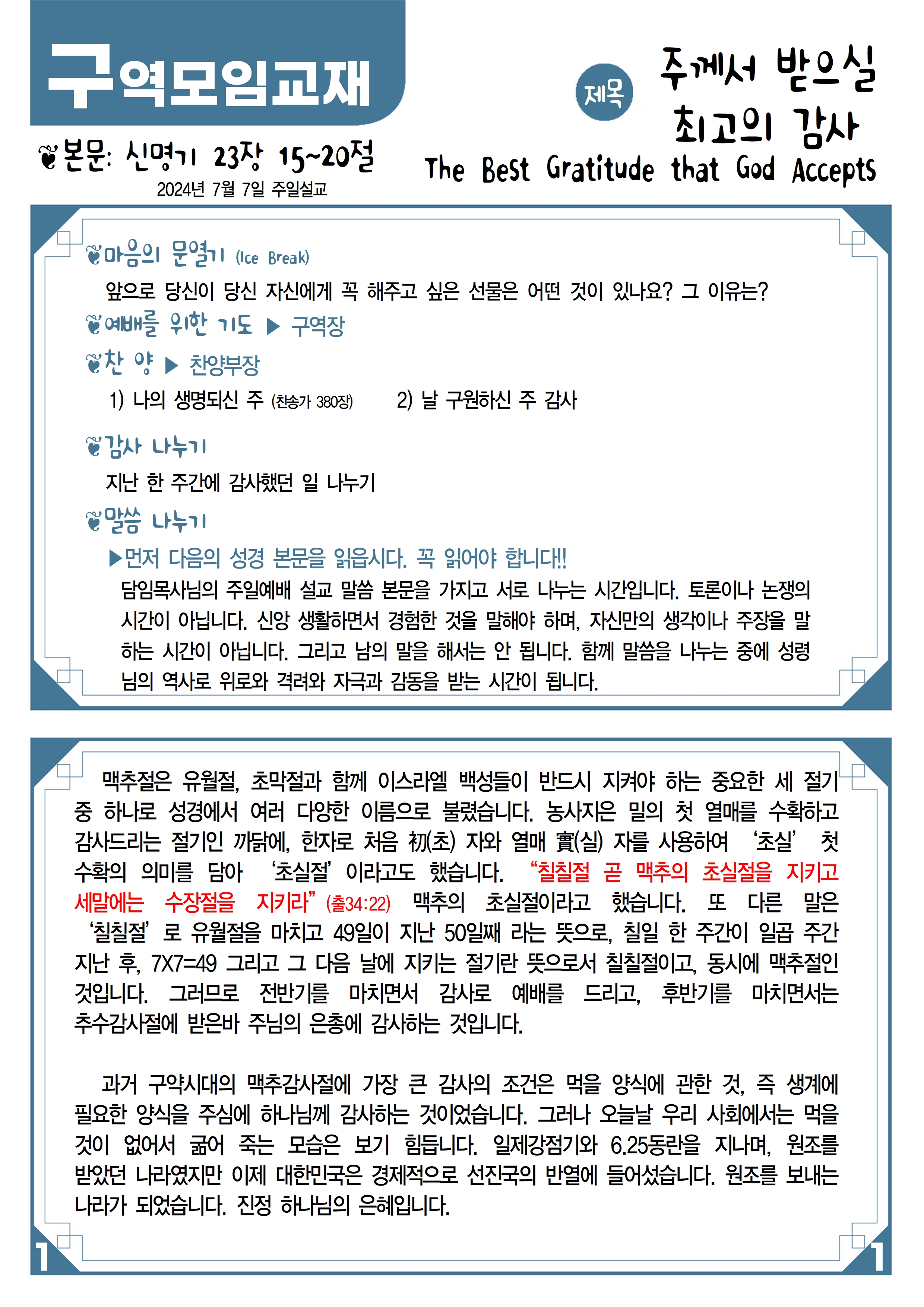 | 다음글 | 2024년 6월 30일 주간 구역모임교재 | 조홍유 | 2024.07.04 | 1 | 394 |