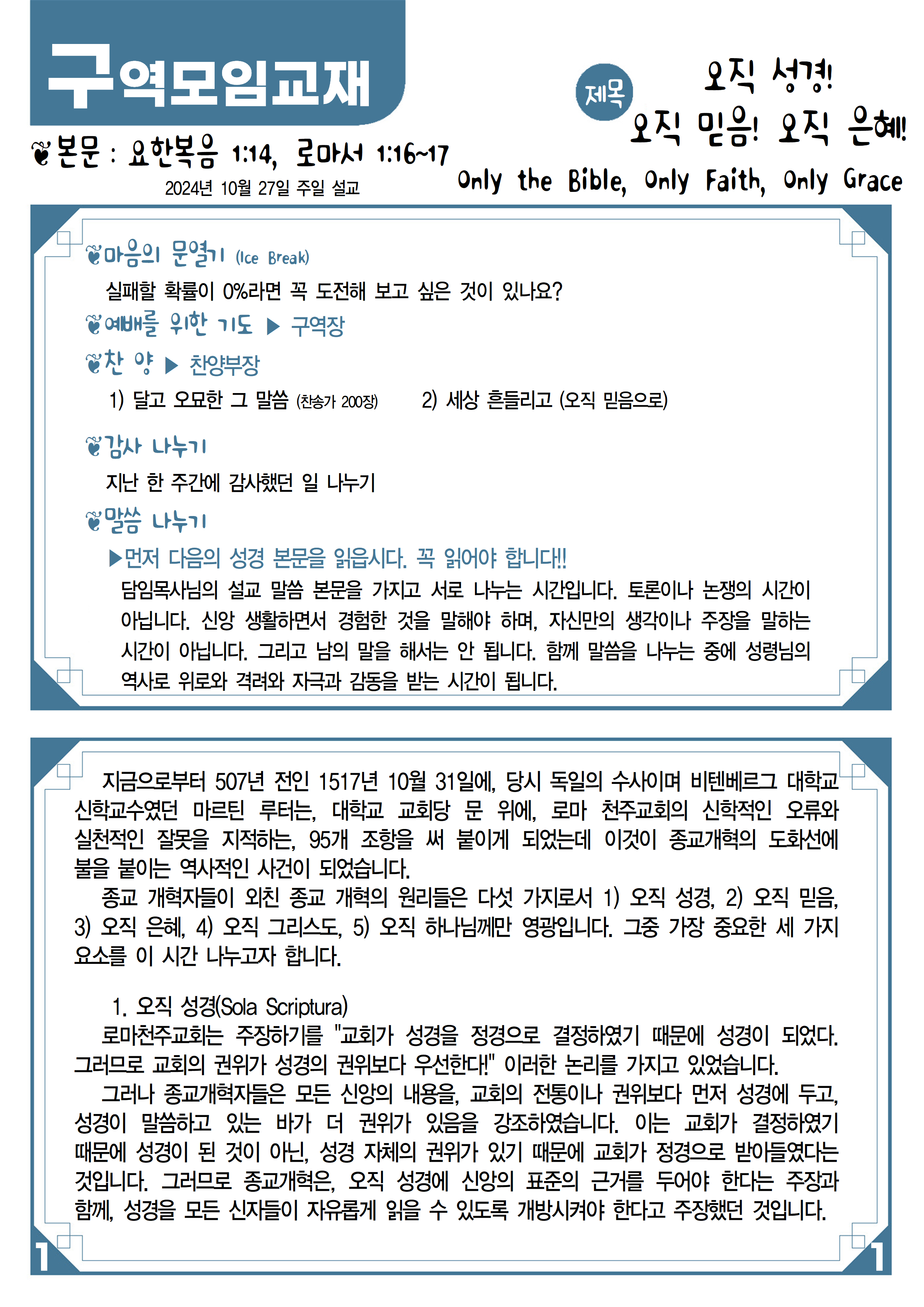 | 이전글 | 2024년 11월 3일 주간 구역모임교재 | 조홍유 | 2024.11.02 | 0 | 373 |