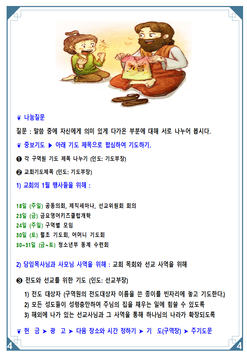 | 다음글 | 2026년 1월 11일 주간 구역모임 교재 | 박유진 | 2026.01.11 | 0 | 112 |